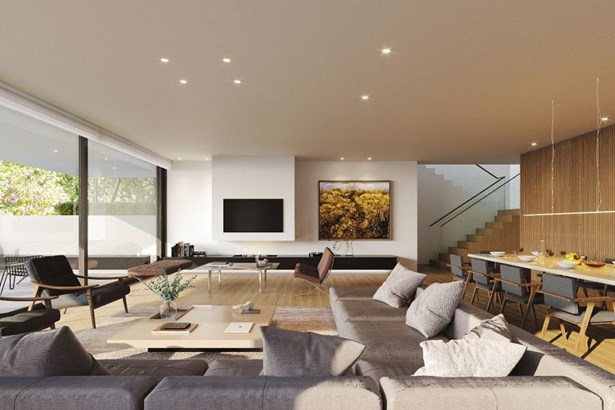 The basement level of 220m2 has access through a private elevator or the internal staircase. Consists of a shared parking area, a storage room and a laundry/pantry room.
