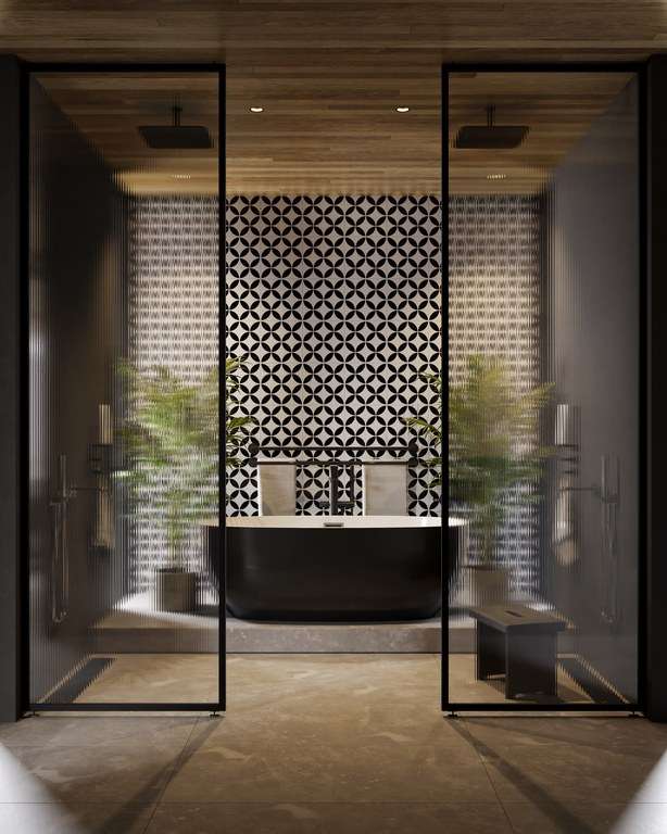 Expansive floor-to-ceiling glass doors dissolve the boundary between inside and out, opening onto shaded terraces, curated gardens, and a serene poolscape that invites year-round enjoyment. The layout is both generous and intimate, featuring spacious living areas, a chef's kitchen, private bedroom suites, and natural cross-ventilation that enhances comfort and sustainability.