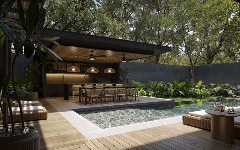 Scheduled for delivery in early 2026, Casa Araza spans 559 m2 (6,015 sq ft) of interior space on an 800 m2 lot, seamlessly blending structure and landscape to create a home that breathes. Its minimalist tropical aesthetic is anchored by natural materials—polished concrete, soft wood tones, and subtle textures—that echo the tranquility of its surroundings. Every line, proportion, and finish has been chosen with care to offer both visual harmony and practical luxury.
