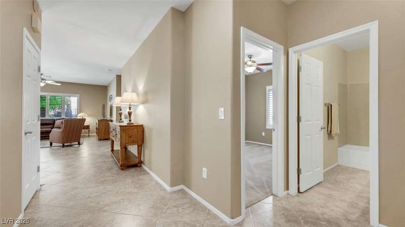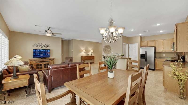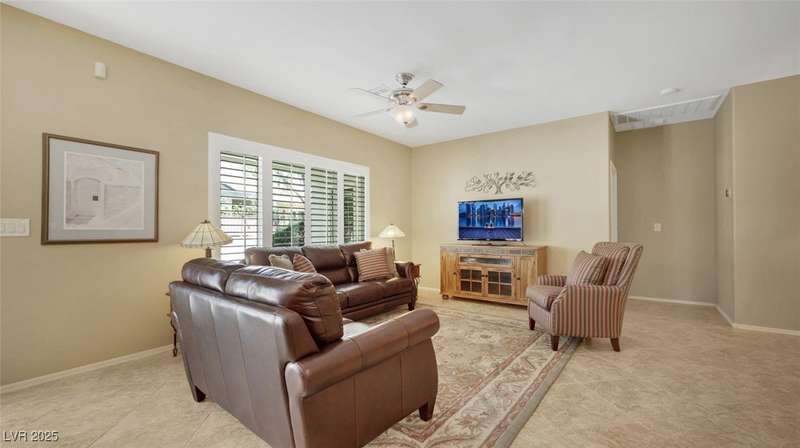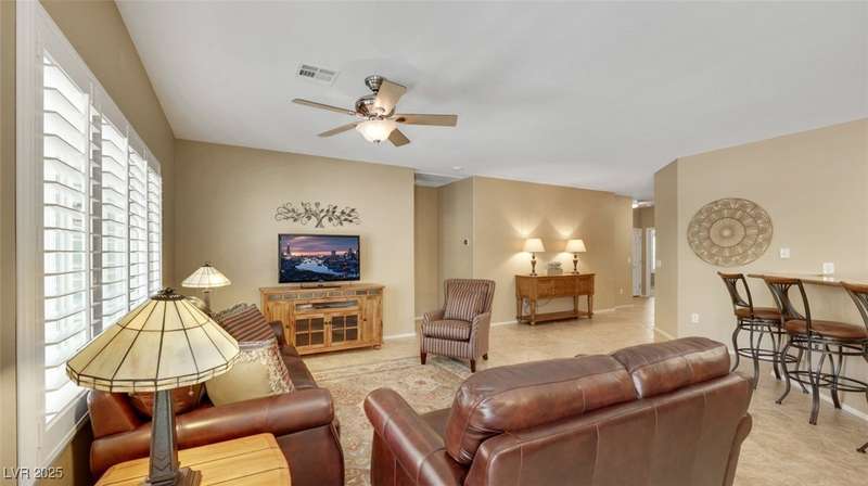 This stunning 3BD, 2BA Sun City Anthem (55+) Virigina model looks & feels beautiful inside & out. It is completely move-in ready & located on a quiet interior street just blocks away from both SCA Community Recreation Centers. Exterior offers great curb appeal w/inviting walkway & gated entry. Interior highlights include fresh paint, tile in all traffic areas, custom shutters throughout, large great room, multiple dining areas, granite kitchen w/SS appliances, interior laundry room, large primary suite & bath w/walk-in closet, plus 2 separate guest rooms & full bath. Professionally cleaned throughout. 2-car garage offers built-in cabinets, epoxy flooring & soft water system along w/newer HVAC system & hot water tank. Rear yard offers large private covered patio area, mature shade trees & easy maintenance. Furniture is also optionally available. Low taxes @ $2755/yr & low HOA fees @ $446/quarter. Easy to show anytime. Ideal price point & great community means this home will not last.