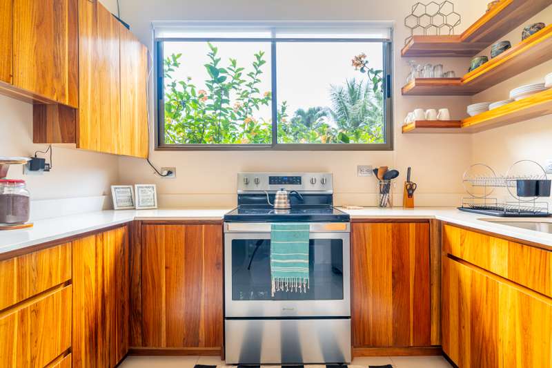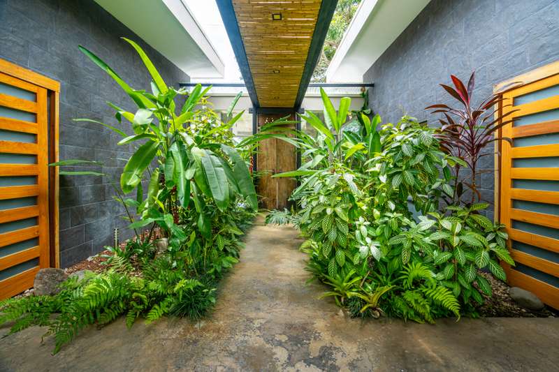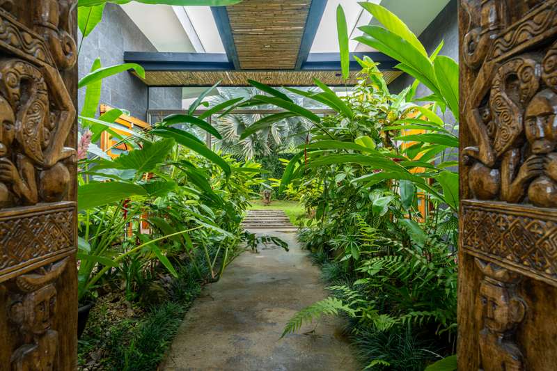 The home features a gorgeous teak kitchen, complemented by a handcrafted teak Bali door that serves as a striking entrance. Set amidst lush greenery and mature tropical landscaping, this property provides a true feeling of privacy and tranquility, a tropical oasis at your doorstep. Imagine waking up to the sound of birdlife, surrounded by vibrant foliage, with mountain views adding to the serene atmosphere.