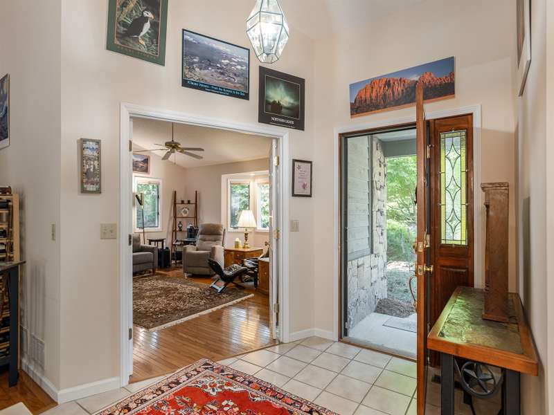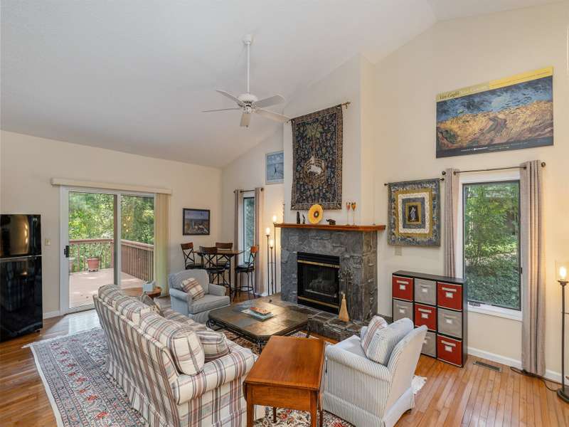 Welcome to this beautiful 4BR/3BA Home in Wooded Mountain Community! Enjoy main-level living at its best with an open floor plan, cathedral ceilings, and hardwood floors throughout. The great room features a stunning stone fireplace, while the large eat-in kitchen and expansive sunroom offer plenty of space for gathering and entertainment. The lower level includes 2 additional bedrooms with workshop/craft areas, entertainment/flex space, and tons of storage area. Nestled in a peaceful mountain community with access to a community pool andclubhouse, this home perfectly blends comfort and functionality. Currently, there is an assumable VA mortgage on this property at 2.5%.