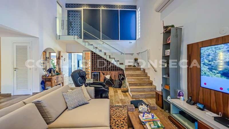 Casa em Condomínio no bairro Aldeia da Serra com 212m² área construída, 3 dormitório(s), 2 suíte(s), 4 vaga(s), 4 banheiro(s), piscina, ar condicionado, dep. de empregados, reformado (a), aquecedor solar, pé direito duplo.