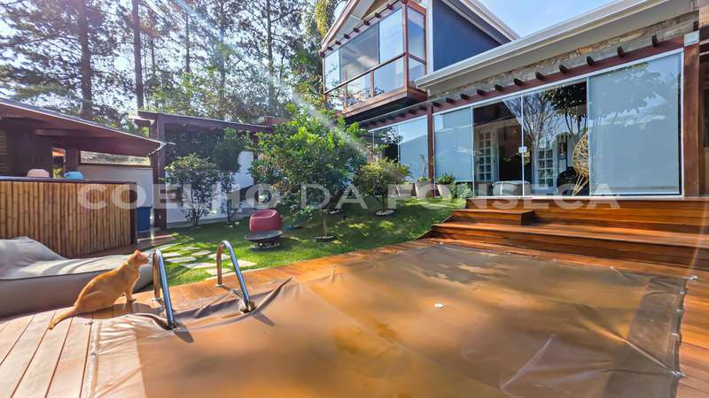 Ótimo imóvel, excelente negócio! bem localizada, em alameda tranquila a casa possui energia solar fotovoltáica em pleno funcionamento. A arquitetura traduz a essência de Aldeia da Serra, com ambientes muito acolhedores e uma atmosfera agradável. A cozinha é em plano aberto, e integrada com a sala que tem pé-direito duplo. Possui ainda lavabo, 3 dormitórios e uma área de quintal ampla, com piscina aquecida e área gourmet coberta! Destaque para o estado impecável de manutenção. A casa foi totalmente reformada e não há nenhuma reforma necessária a se fazer! Agende sua visita e venha conhecer!