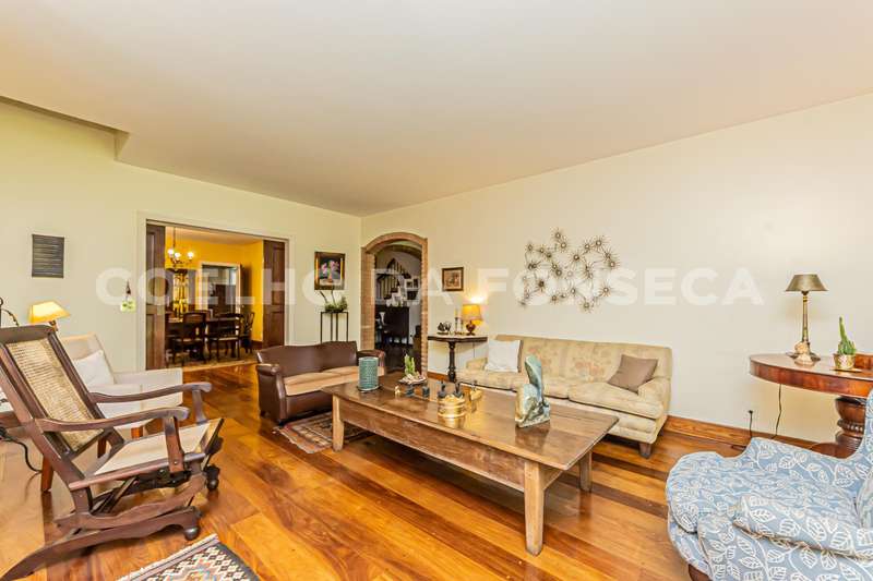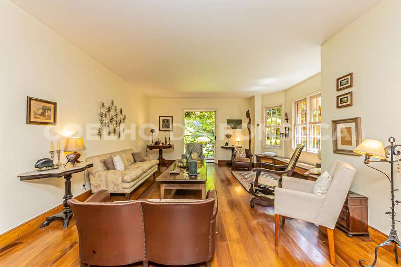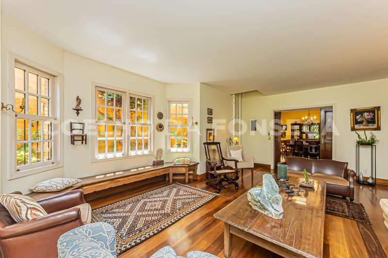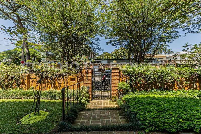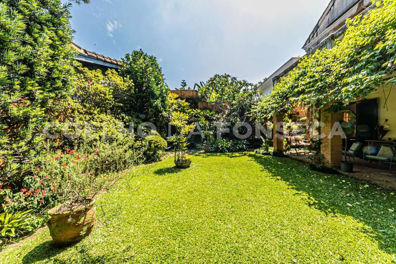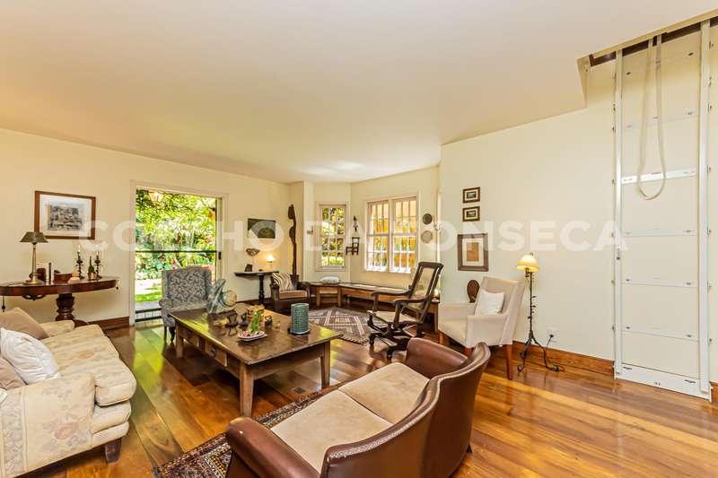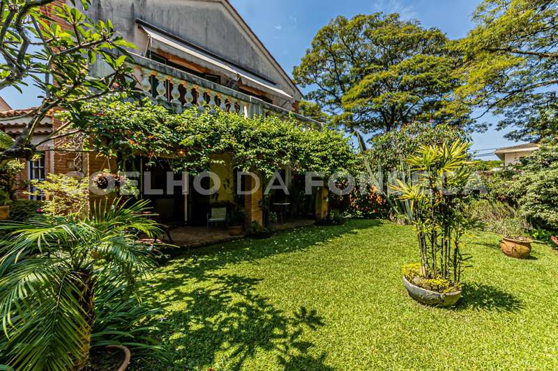 Casa muito agradável com jardim encantador. Nos remete a uma casa da fazenda, Para modernização. Possui elevador.