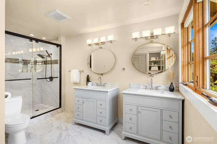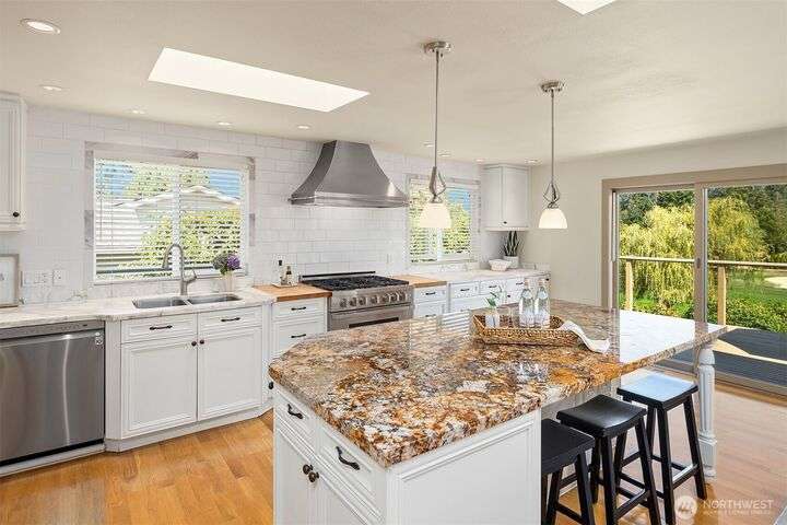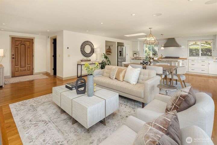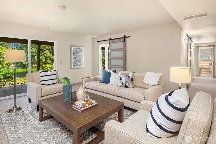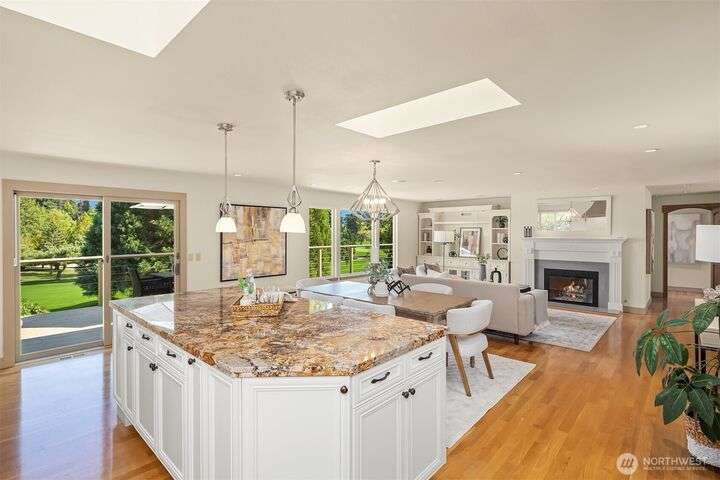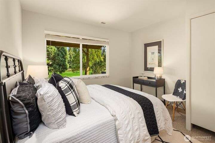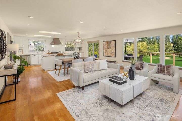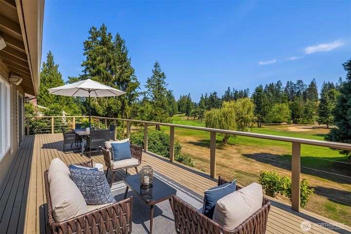 Move-in Ready Renovated Bellevue Rambler w/daylight LL on the Fairway in coveted Tam O’Shanter Community. Open concept w/chef’s kitchen~SS appliances & gas cooktop, marble/granite countertops overlooking private golf course, w/spacious wrap-around extensive deck for entertaining. Primary on main w/updated ensuite + spacious walk-in closet. LL features updated bath, 2 large bdrms + office/addit bd & bonus room. Covered patio overlooking a thoughtfully designed tiered garden + mature landscaping. Hdwd floors, A/C w/heat pump & newer furnace. 2-car garage + golf cart bay. Top rated Bellevue Schools~ Interlake High & Bennett Elem . Amenities: Golf/Pickleball/Tennis/Swim/Private Park, Clubhouse/Restaurant.Min to Dwntn Bellevue/MSFT/520 & I-90.