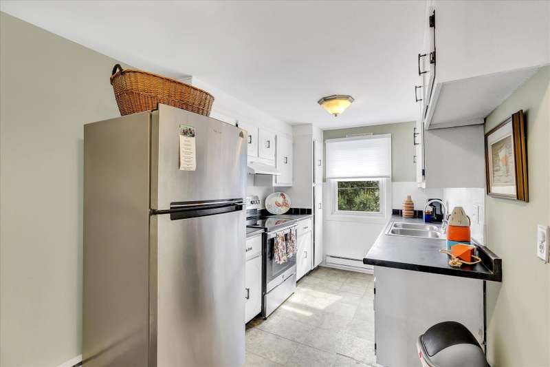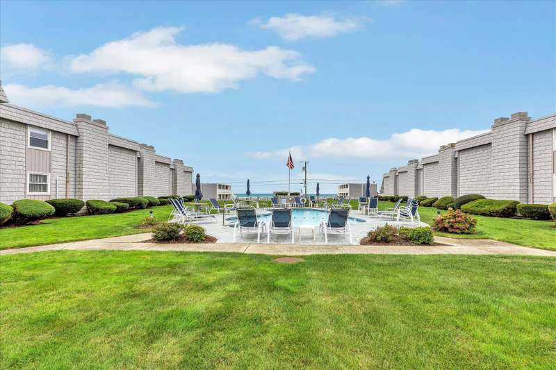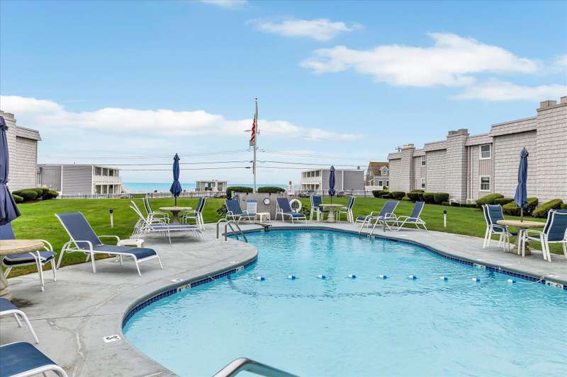 Year-Round Condo with Ocean Views & Deeded Beach Access in Dennisport. Enjoy seaside living in this bright and inviting 2-bedroom, 2-bath condo just steps from the beach. Located on the second floor, this well-maintained unit offers a spacious living/dining area, a large eat-in kitchen, and a private porch with ocean views perfect for morning coffee or evening relaxation. The primary bedroom includes an en suite full bath, while the second bedroom is served by a full guest bath. Additional amenities include a private basement storage room with in-unit laundry, an assigned parking space, and access to a heated in-ground pool. The condo association covers essentials like building maintenance, landscaping, trash removal, snow plowing, basic cable, and pool maintenance for a monthly fee of $677. This Dennisport community offers deeded beach rights directly across the street. Association rules require permanent residents to be 18+; however, guests may be of any age. No pets allowed.
