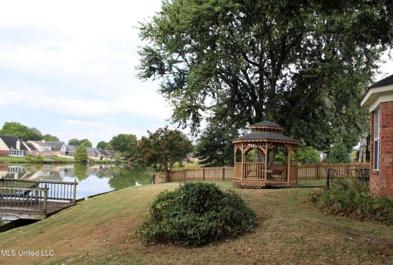In Plantation Lakes, perfectly positioned on the water with breathtaking lake view! This charming one-level home features 3 bedrooms and 2 baths with desirable split-bedroom floor plan designed for comfort and privacy. The adorable kitchen boasts stainless steel refrigerator, gas stove with microwave vent hood, dishwasher, pantry, and hardwood flooring, plus dining area that overlooks the lake. It opens seamlessly into the spacious 17.1x15.7 great room with hardwood floors and a cozy fireplace with gas logs - perfect for relaxing or entertaining. Retreat to the 14.1x11.7 primary suite with private bath featuring double sinks and a walk-in closet. Two additional bedrooms measuring 10x9.10 and 11.5x10 both feature luxury vinyl plank flooring with full bath to service. Convenience is everywhere with pull-down attic stairs, laundry closet with washer and dryer to remain, linen and coat closets, 2-inch blinds throughout, and double garage with storage closet and cabinets. Outdoors, enjoy a large backyard complete with gazebo, patio, pier, irrigation system, and partial privacy fencing--all set on a picturesque lake lot in a cove with sidewalks. Subdivision amenities include a playground and additional lake access, making this an ideal blend of recreation and relaxation. Don't miss your chance to experience lake living at its finest! Some photos virtually staged with furnishings.