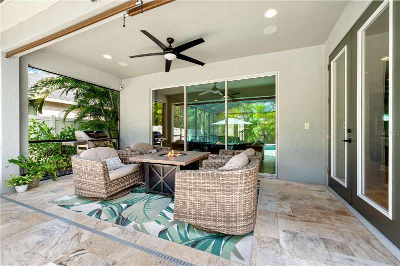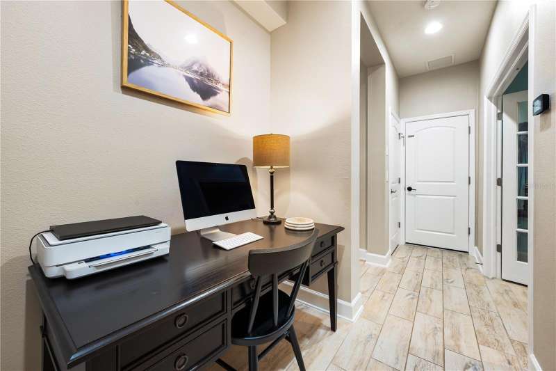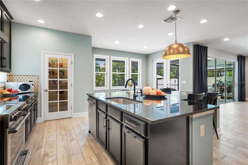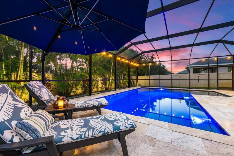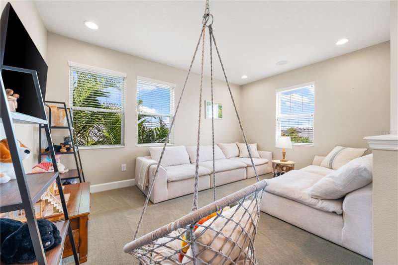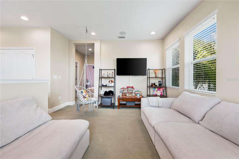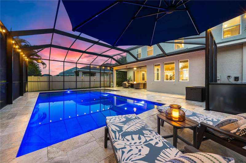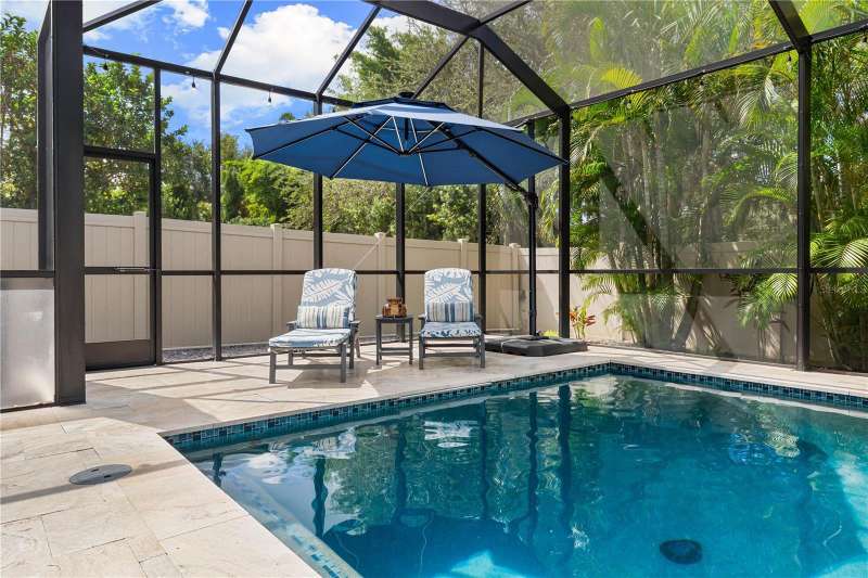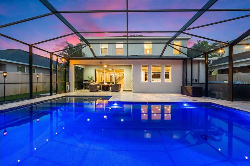 Welcome Home to this beautifully maintained property. The open Great Room is spacious and inviting, which leads right out to the gorgeous pool area and fenced in backyard. There is also a coveted 3 car garage! The floors are a neutral tile (that looks like wood) and are throughout the downstairs area. The beautiful staircase is engineered hard wood. The kitchen is huge, immaculate and stylish with granite counter tops and counter seating. Upstairs you'll find the primary bedroom, beautiful en-suite bathroom and super-size closet. Two additional bedrooms, the second bathroom and a loft area for study or play zone. Convenient upstairs laundry is also a plus! Wait until you see the spectacular, large, saltwater pool and ample deck space, both in and out of the sun. The pool was new in 2022 and has a heater and a large sun shelf with a pool umbrella. The pool decking is travertine, and the interior of the pool is pebble tec. The lighting at night is “drop dead knock your socks off”! The exterior was painted in 2023. A whole house 50Amp generator hook-up is included for peace of mind and hurricane shutters as well. A new water heater was installed in 2024. Palmer Reserve is located very near to Tatum Ridge Elementary and the Celery Fields. Just East of 75, a growing area, with a new Publix at Fruitville Farms, and the Fruitville Library, and a short drive to the UTC area, Waterside at Lakewood Ranch for dining and shopping, and the brand-new Mote Marine Aquarium. This location can't be beat. Easy access to I-75, or downtown and the hospital. No CDD fee and low HOA that covers cable, internet, irrigation, the community playground and common area maintenance. This home has been lovingly maintained and is in pristine condition with beautiful landscaping and landscape lighting. You will not be disappointed!!!