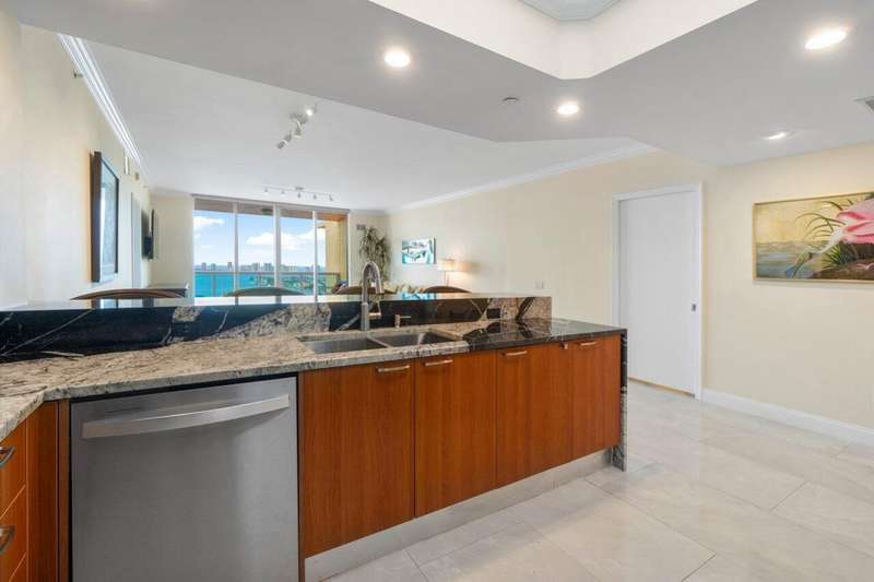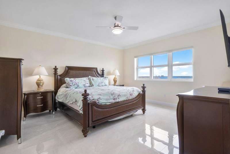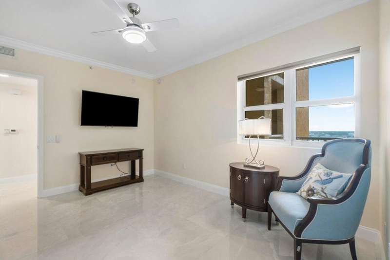 Panoramic 22nd floor Intracoastal & ocean views! Immaculate 2BR/2.5BA condo w/impact glass, Open concept w/spacious great room, dining/den, granite waterfall and backsplash in kitchen w/stainless appliance with split floor plan. Spacious owner suite w/his & her walk-in closets. Marble owner bath w/double vanity, jetted whirlpool bathtub & water closet. LED-lighted vanity mirrors in every bathroom. Neutral fresh paint and porcelain flooring throughout. Assigned parking, 24/7 manned gate, valet, tennis, pickleball, walking path w/gazebo, covered rooftop oasis w/pool, spa, BBQ areas, clubhouse, billiard room & fitness center. Marina w/dry docks available. Jump on your boat effortlessly & be on the ocean in minutes; no fixed bridges!