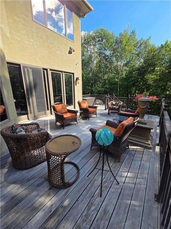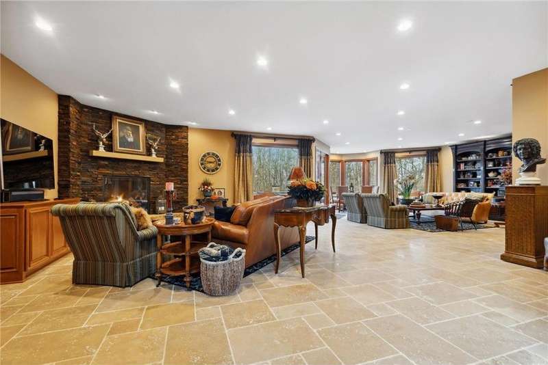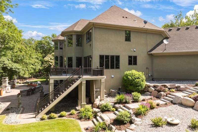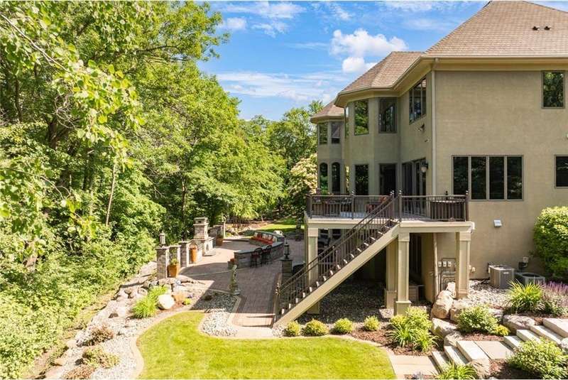 Private, Peaceful Setting with Beautiful Views! Custom one-owner home on 10 wooded acres (with more land available), featuring an elevator to all three levels, plus additional ensuite bedrooms—perfect for multigenerational living. Quality craftsmanship throughout with hand-formed brick, Arkansas River Rock exterior, 12-ft ceilings, and floor-to-ceiling windows. Gourmet kitchen with cherry cabinets, Sub-Zero/Wolf appliances, large granite island, and prep pantry. Hearth room with Colorado stone fireplace, elegant dining room, grand office, and sunroom overlooking the deck and expansive patio with outdoor kitchen and fireplace. Ideal for entertaining! Multiple office spaces. Luxurious owner’s suite with spa bath and heated floors, plus a versatile flex room. Walkout lower level includes a large granite bar, fireplace, heated stone floors, bedroom, exercise room, and storage. Like new and move-in ready! Easy access off Hwy 169 and only 37 minutes to MSP Airport.