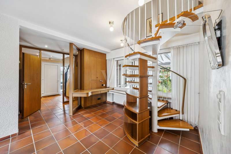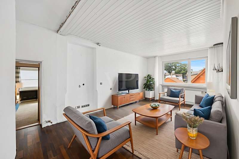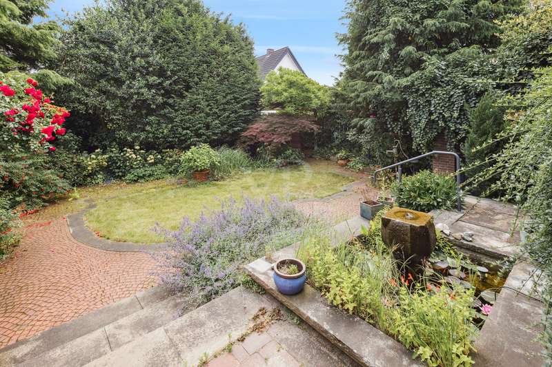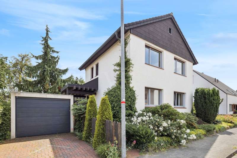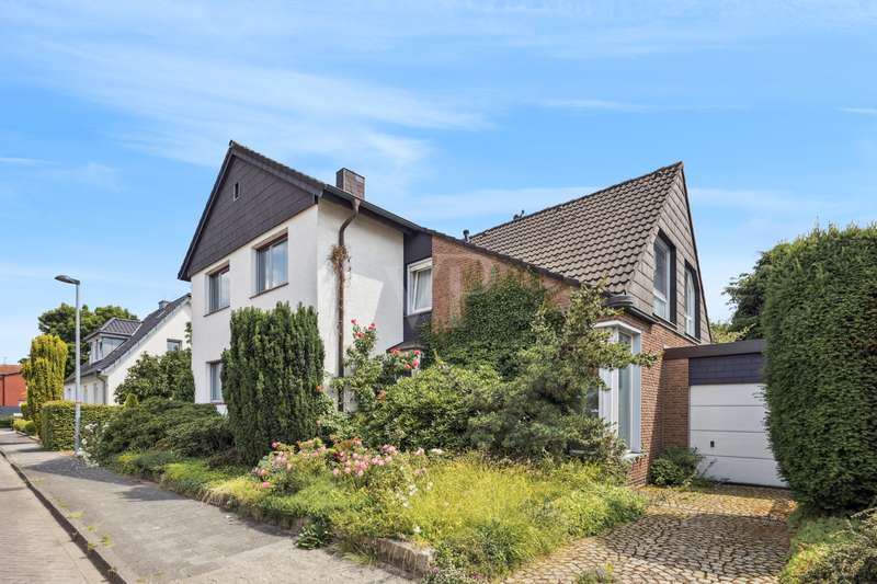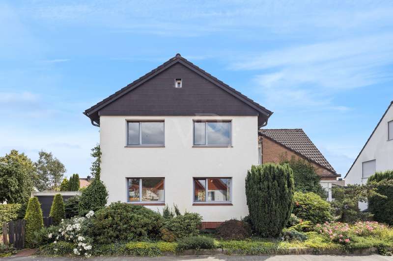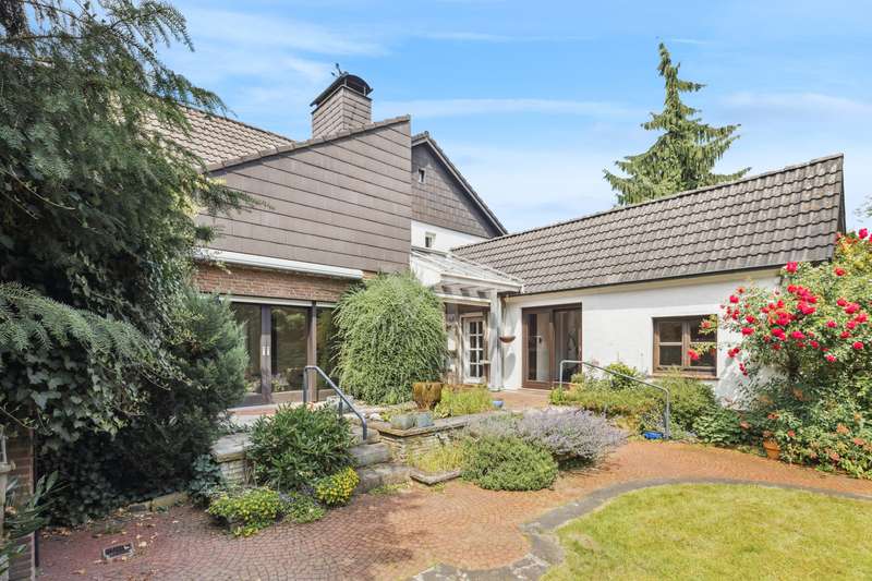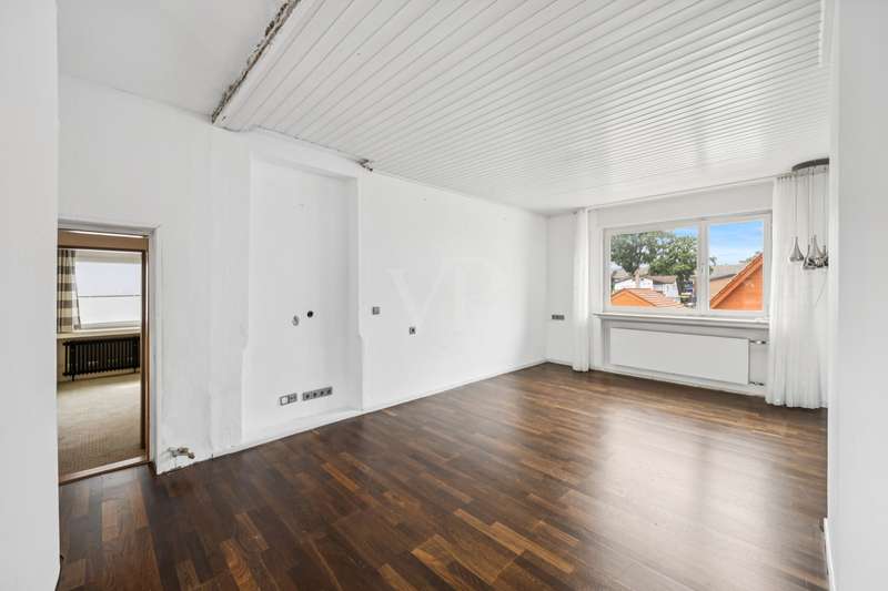 This charming and lovingly maintained detached house from 1936 not only offers a solid building structure, but also plenty of space for individual living ideas. With a total living space of around 177 m² spread over two levels, the property is ideal as a spacious family residence - with the possibility of converting it into a two-family home in the future. The layout of the house is well thought out and opens up numerous possibilities for use: A bright, spacious apartment with approx. 105 m² of living space awaits you on the first floor. You enter a hallway with dining area, which leads into a spacious living room. There, an attractive fireplace ensures cozy evenings. The hallway, equipped with a guest WC and a bathroom, leads past a cozy sitting area with an unusual window façade into the potential kitchen area. The open-plan living and dining area impresses with its inviting size and harmonious connection with the private areas of the house, which also has a bedroom. The upper floor offers flexible usage options - ideal for a large family or conversion into a two-family home. The living space here is approx. 72 m² and can be reached either via the fixed staircase in the entrance area or via a stylish spiral staircase in the hallway. The extension from 1974 has two bedrooms, which are individually designed due to the sloping roof of the special roof shape of the house. A small bathroom with shower completes this area. A narrow entrance leads into the old building, where there is a spacious living room with an open and bright character. From here or from the hallway you have access to the balcony. A kitchen, a storage room and a second small bathroom complete this residential unit. The spatial flexibility of the house is supported by the clear separation of the floors, so that both shared use and subsequent rental of individual areas can be easily realized. The rather unusual floor plan offers numerous options - the ideal home for anyone looking for long-term planning and room for growth. This special home is waiting for you to add your own personal touches and make the most of its potential. The outside area impresses with a harmonious design and a large and lovingly landscaped garden. The offer is complemented by a deep single garage with enough space for a car and garden tools. It is located in a quiet residential area of Rheine - away from the hustle and bustle but still well connected. It offers plenty of space to linger, play and enjoy - a retreat for the whole family. Have we piqued your interest? Then we look forward to hearing from you. Take the opportunity to see this individual property for yourself.