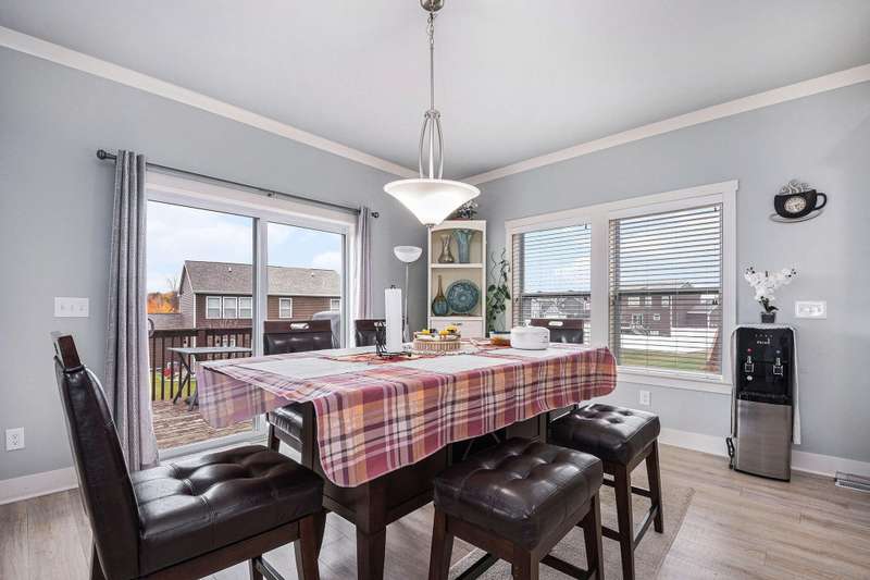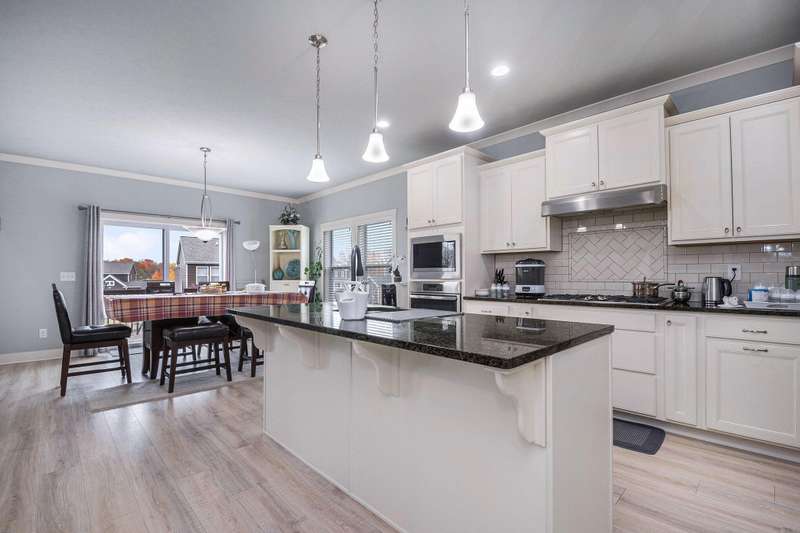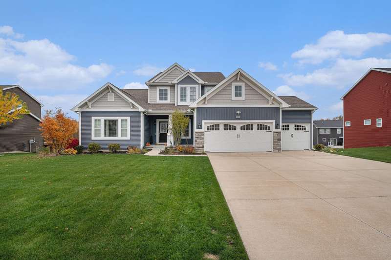 New on Market!!! this Bryon Center home has many of the extras you have been waiting for> with 4855 total sq foot this Stunning 5-bedroom, 3.5-bath walkout home in the desirable Stonegate neighborhood. With over 4,200 sq. ft. of beautifully-finished living space, this ''better than new'' Byron Center home is a dream come true. Open floor plan with dramatic two-story great room adjoining kitchen and dining area. Kitchen boasts gorgeous cabinets, granite counters, tile backsplash, stainless appliances including gas cooktop, large center island/snack bar, walk-in pantry. Spacious main floor pbedroom with ensuite bath with tile shower, soaking tub, dual sink vanity, and walk-in closet with custom built-ins. Den with wainscoting, mudroom, laundry with sink complete the main floor. Up are 3 good-sized bedrooms and full bath. The walkout level includes a family room with well-equipped kitchenette, bedroom, bath,, and large exercising room, plus large storage room or work area. but it keep getting better with a three stall garage that has been totally updated with a full working kitchen with stove refrigerator and microwave and sink and garage heater and epoxy floor and full electric car charging unit. lawn is amazing and underground sprinkling