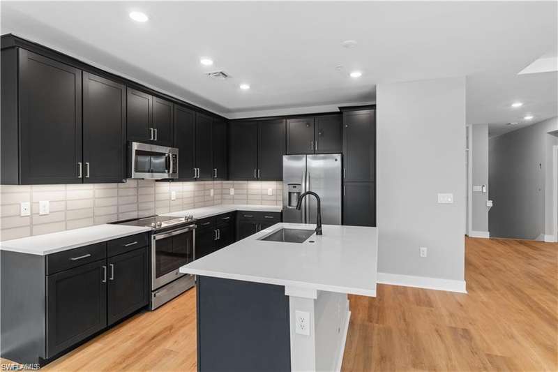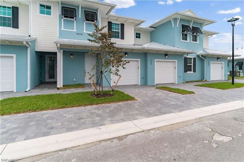 Experience the epitome of coastal elegance in this stunning 4-bedroom, 3.5-bathroom townhome located in the highly coveted Villa Mar Bonita Beach community one of Bonita Springs' most desirable and newly developed neighborhoods. This brand-new, never-lived-in residence offers the perfect fusion of luxury and comfort, ideal for those seeking a move-in ready retreat just minutes from the sugar-white sands of the Gulf. Step inside to discover a thoughtfully curated interior with a modern island-style aesthetic, where the heart of the home the designer kitchen features sleek stainless steel appliances, an abundance of cabinetry, and expansive countertops that make both everyday living and entertaining a breeze. The open-concept layout seamlessly connects the kitchen to the spacious family room, creating an inviting space for gatherings and relaxation. Each generously sized bedroom includes its own en-suite bathroom, offering unparalleled privacy and comfort, while a stylish powder room a