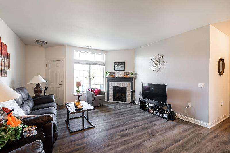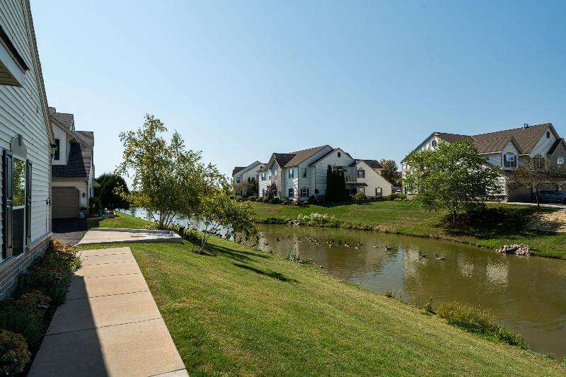 Welcome to this beautifully updated 2 bd, 2 ba condo in The Villas! This desirable corner unit offers peaceful pond views & the spacious living room features a cozy gas fireplace, perfect for relaxing evenings. Updated in 2024, the modern kitchen boasts stainless steel appliances & flows seamlessly into the dining space. Enjoy the convenience of an in-unit stackable washer/dryer & a 2-car attached garage. The private primary suite includes a walk-in closet & attached bath, while the second bedroom & bath provide comfort for guests or a home office. Community amenities include an outdoor pool & hot tub, clubhouse, & a workout room, adding resort-style living right at home. Pets are allowed! Updates began in 2021, and it's now designed for comfort & convenience! Close to Amtrack & I94!