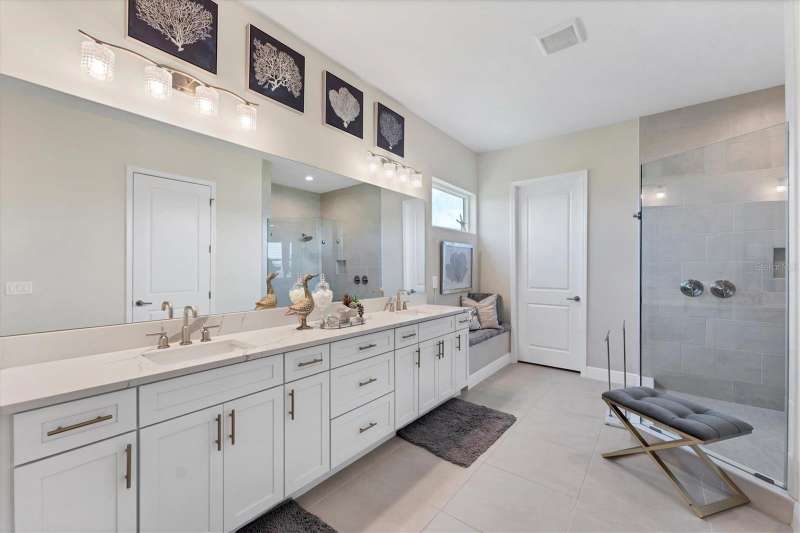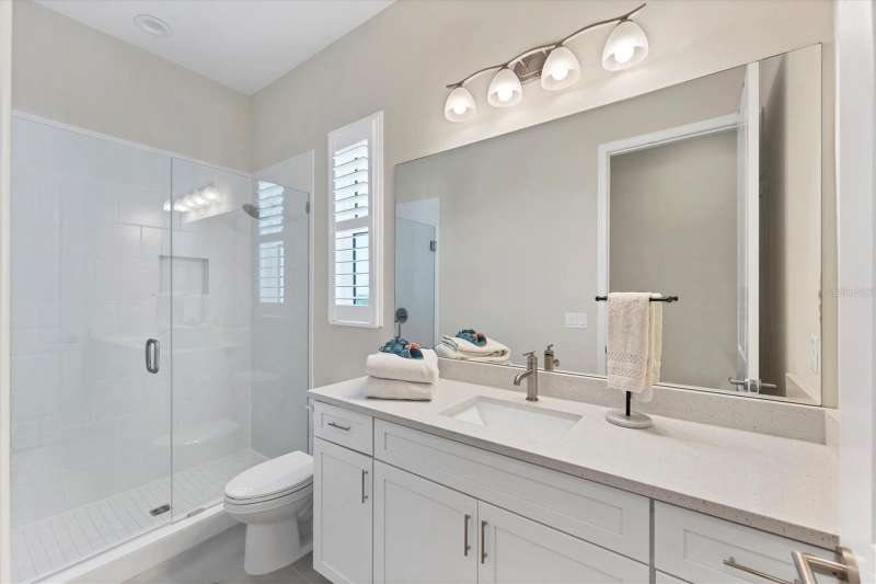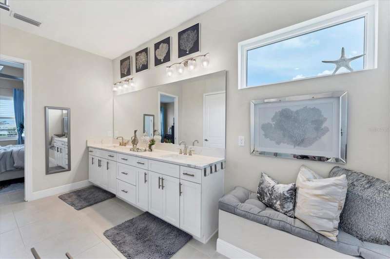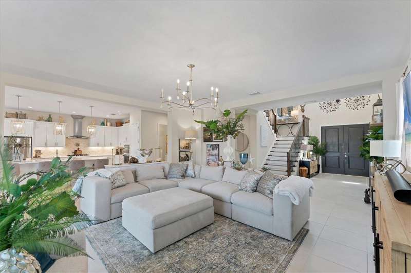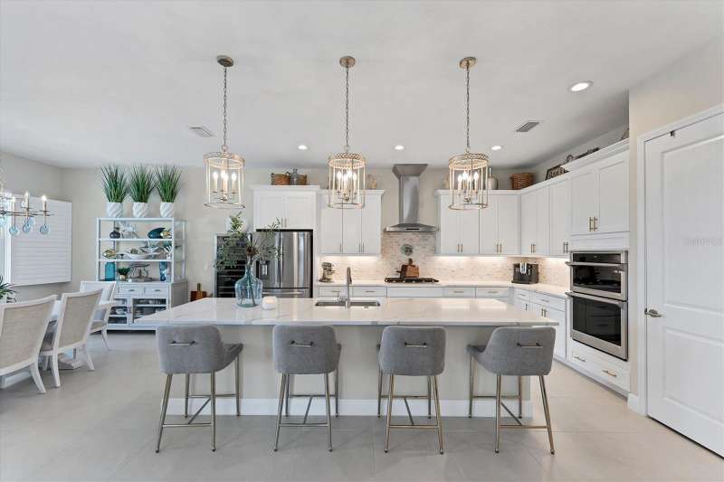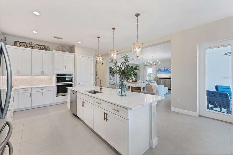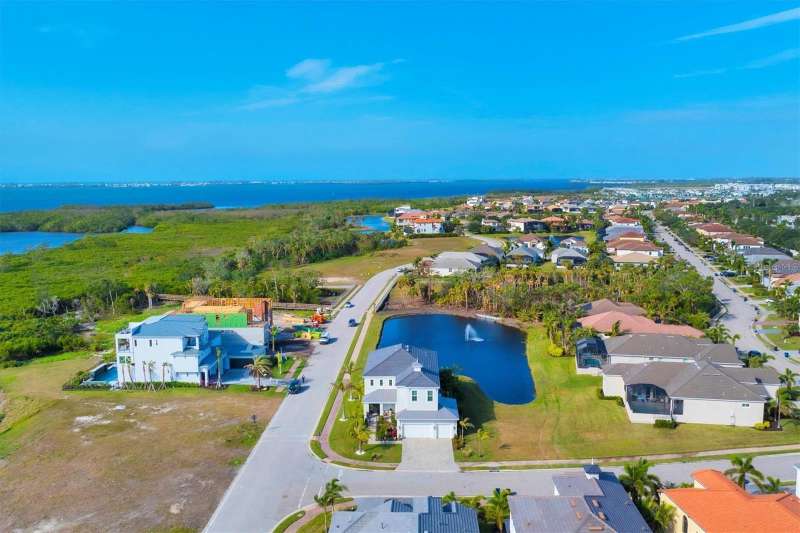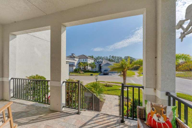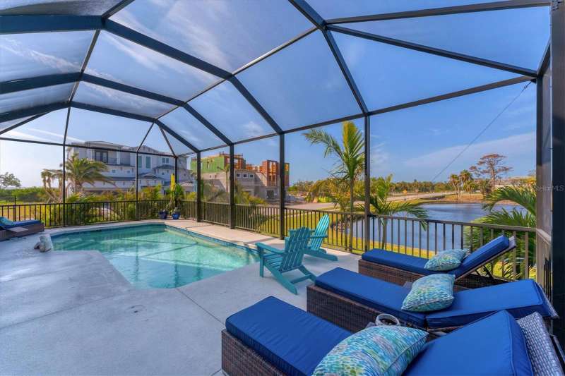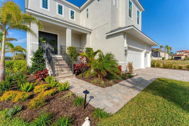 Under contract-accepting backup offers. This stunning two-story waterfront residence perfectly blends modern luxury with coastal tranquility. Built in 2022 and located in the coveted, maintenance-free gated community of Legends Bay, it boasts five bedrooms, four bathrooms, and an expansive 3,848 square feet of living space. What sets this home apart from others is - a GENERAC WHOLE HOUSE GENERATOR, POOL BATHROOM, VACANT LOT NEXT DOOR THAT CANT BE BUILT ON (YOU BENEFIT FROM THE PRIVACY AND SPACE), A DOG RUN JUST OFF THE POOL AREA (EASY FOR PET AND YOU!), CUSTOM PLANTATION BLINDS, TOP-OF-THE-LINE LIGHTING, $10,000 of UPPER/LOWER STORAGE SYSTEMS IN GARAGE, NEW LAUNDRY SINK, FPL LEVEL 2 EV CAR CHARGER, $30,000 in ENHANCED LANDSCAPING, CUSTOM LIGHTS AROUND POOL AND NEW FANS ON BALONY & PATIO. Designed with both style and functionality in mind, it features all-impact glass for peace of mind and efficiency. At the heart of this home lies the spacious great room with high ceilings and an abundance of natural light, creating a bright and inviting ambiance. Sliding doors open to the screened patio, enhancing the flow between indoor and outdoor living. Outdoors is a true retreat complete with a sparkling pool, generous covered seating area, and peaceful lake views, offering the perfect space for relaxation and entertainment. The kitchen is a chef’s dream featuring a large island with seating for four, sleek tile backsplash, stainless steel appliances, and a statement range hood. Upstairs, a versatile loft area can be a great bonus/game room leads to a screened balcony offering captivating views of the lake and Sarasota Bay. Two en-suite bedrooms provide privacy and comfort, while the generous primary suite is a true sanctuary, featuring a spa-like bath with dual vanities and a glass-framed walk-in shower. , custom lights around the pool, and new fans on both the balcony and patio. SOME FURNITURE IS AVAILABLE. Located less than three miles from IMG Academy and just a golf cart ride from IMG Golf Club, this exceptional home is perfectly positioned to enjoy the best of Sarasota’s lifestyle, with its blend of luxury, comfort, and proximity to world-class beaches, dining, and cultural attractions.