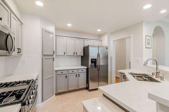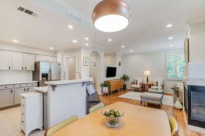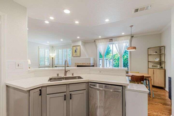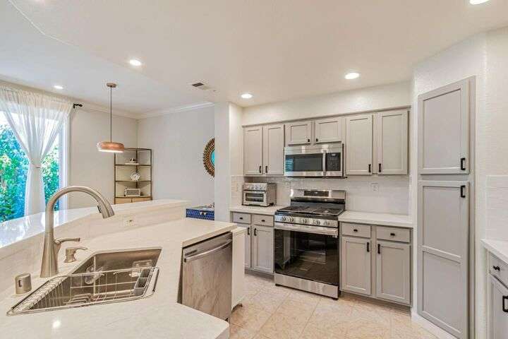 Welcome to 828 Monarch Lane a charming 3 bed, 3baths open floor plan with end unit in a Basking Ridge Community offers 1512 sf of living space with a 2-car attached garage. Beautifully updated kitchen is well equipped with a gas stove cooktop, stainless steel appliances including extensive cabinet space. The dining area is adjacent to the kitchen making it perfect for casual meals and entertainment includes a breakfast bar, and a cozy gas fireplace, leads to the back private backyard-perfect for indoor-outdoor living. The ground floor bedroom and full bathroom on the living level offers convenience and flexibility for various living arrangements. Upstairs there are 2 spacious en-suite bedrooms. Primary suite impresses with a walk-in closet spacious bathroom with dual vanities. Community with plenty of guest parking, beautiful grounds, a swimming pool and spa.