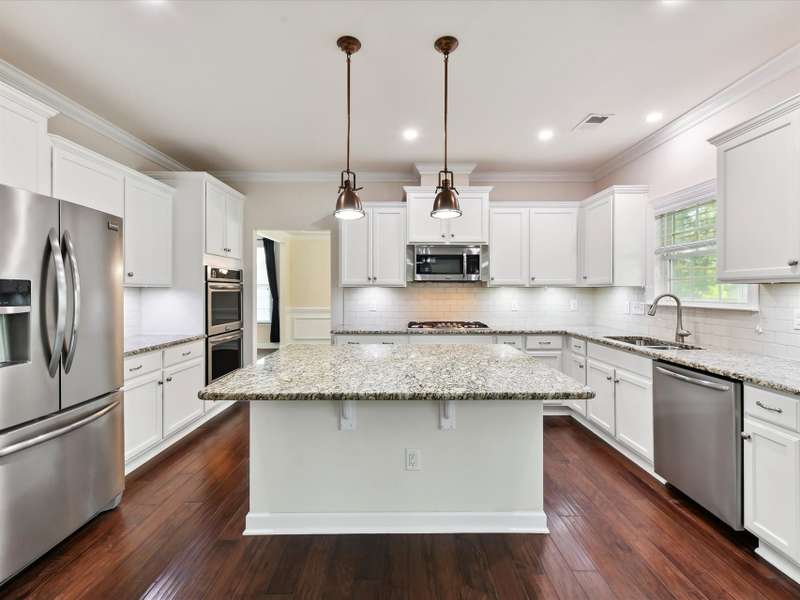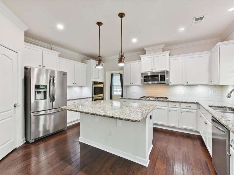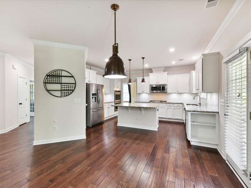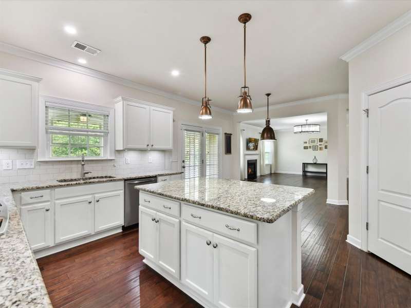 Come and see this stunning home in Southern Trace with a large southern front porch! Located next to the Palisades on Lake Wylie. This home features a bright & sunny open floorplan w/upgrades including white cabinets, granite countertops, SS appliances, subway tile, hardwood flooring & designer smart/color changing ceiling lighting. Don't miss out on the closet, turned wine cellar. The primary suite offers a sitting area, & luxury porcelain updated bath. 3rd floor features a bedroom, full bath w/media/bonus room. Check out the huge screened in porch, that turns into a 4-season room w/Eze-Breeze windows. The yard is massive and backs up to a wooded common space perfect for privacy! The pavor patio w/ firepit & built in grilling area, round out one of the best yards in the neighborhood that is easy to maintain due to its smart irrigation system. Come enjoy all this home has to offer! Home warranty included. Neighborhood pool & playground are just a quick walk away.