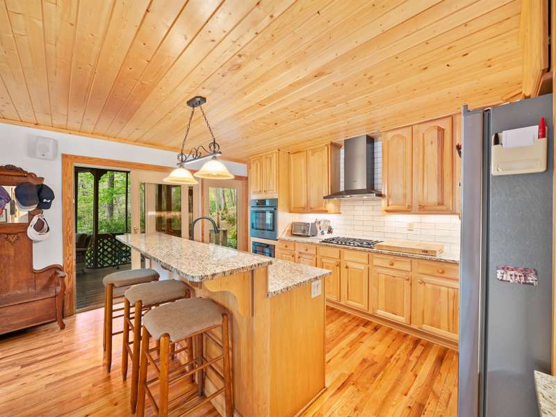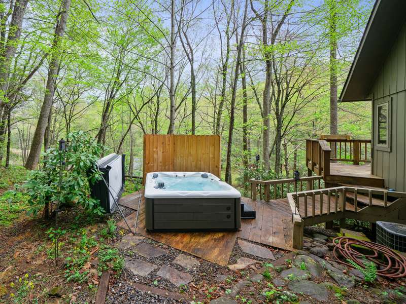 Beautifully renovated home on a double lot positioned strategically on a hill above a babbling brook creating a peaceful home retreat. Property has perfect wooded surroundings and carefully planned landscaping woven along the driveway and cleared paths which complements the home in order to keep it natural and to eliminate any need to mow. Several outdoor spaces surround the home including a exterior hot tub with privacy fencing, screened porch with built in tv screen and open deck for grilling and covered decking outside of the basement level recreation room. The home has had many renovation projects including an addition added of large great room overlooking creekside, totally renovated kitchen and new roof and other recent renovation to basement area. Current owner has purchased the lot to the rear of the property in order to secure privacy and will be including that with the sale of the home. This lot has plenty of room to build additional structures or a guest house.