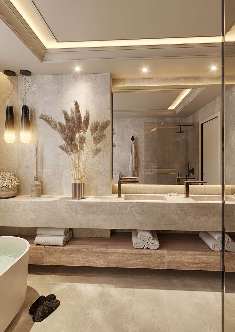 The communal areas are conceived as an extension of the natural landscape, with a choice of outdoor and indoor swimming pools, landscaped gardens and relaxing green zones. Residents can enjoy wellness facilities including a spa and fitness suite, as well as co-working spaces and social areas that encourage a sense of community. The rooftop pool and solarium of the penthouses offer panoramic sea views and spaces designed for Mediterranean entertaining.