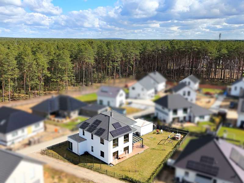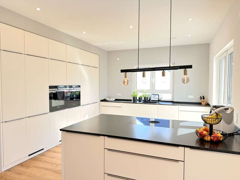 Welcome to your new home - an extraordinary urban villa that combines stylish architecture, modern technology and the highest level of living comfort in perfect harmony. Built in 2023, this urban villa in high-quality timber frame construction offers approx. 225 m² of living space and 7 generously proportioned rooms, providing space for individuality, elegance and quality of life. As soon as you enter, you are greeted by a light-flooded ambience, characterized by floor-to-ceiling windows that generously capture the daylight and create a flowing connection between the interior and exterior. The light-flooded living and dining area forms the heart of the house. The exclusive fitted kitchen with cooking island is a place where culinary enjoyment and conviviality come together. A stylish fireplace in the living area provides warmth and a cozy atmosphere on cooler days. The well thought-out room layout impresses with 7 bedrooms, two modern bathrooms, one with a bath and shower and the second with a shower. The house also has a separate guest WC. A dressing room next to the bedroom rounds off the luxurious living experience. The property is technically state-of-the-art: an air-to-air heat pump heats or cools the property via the ventilation system with energy recovery. The temperature of each individual room can be controlled via the central control unit. In addition, the stove in the living area is also linked to the ventilation system. A PV system with energy storage ensures a sustainable and energy-efficient living experience. Triple glazing, electric shutters and comprehensive full thermal insulation also contribute to the A+ energy efficiency class. Outside, an approx. 40 m² terrace with a view of the lovingly landscaped garden invites you to relax. This covers an area of approx. 450 m. The approx. 829 m² plot is fully developed and fenced. A double garage with electric door offers comfort and security. A 3,000-liter rainwater cistern additionally underlines the ecological claim of this property. This urban villa is more than just a home - it is a retreat for people with high standards, style and an eye for the extraordinary. Note: Once you have completed your contact details, the brochure will be sent to you automatically. For further information, please call us or send us an e-mail.