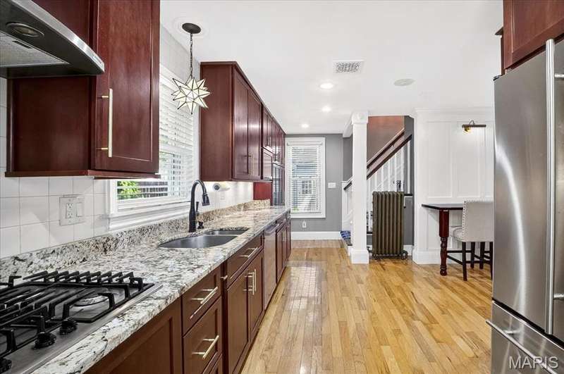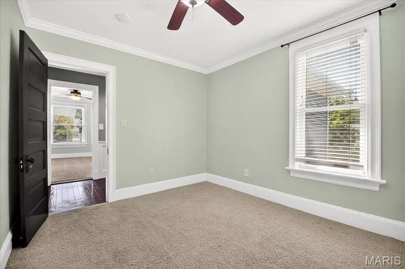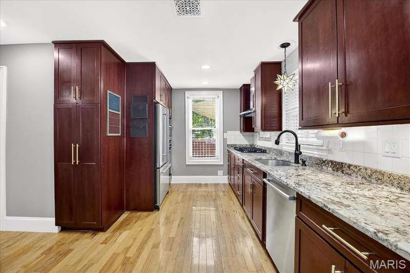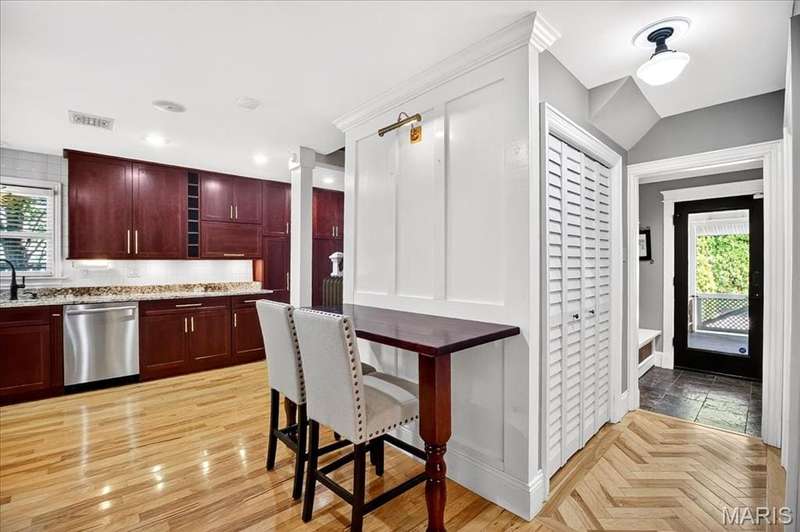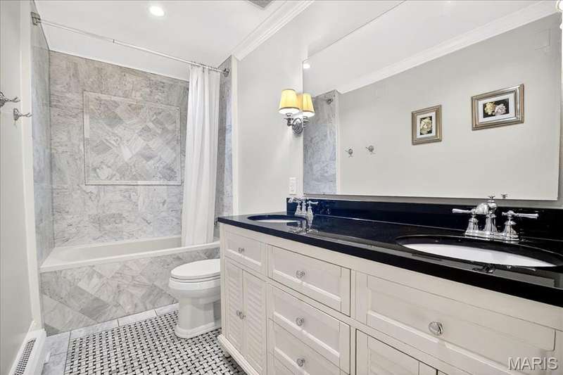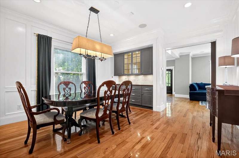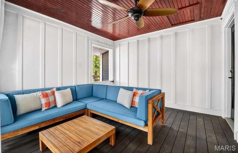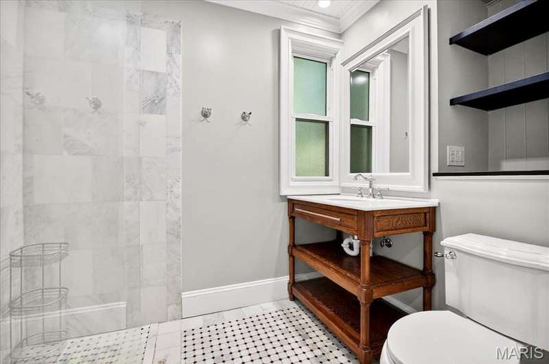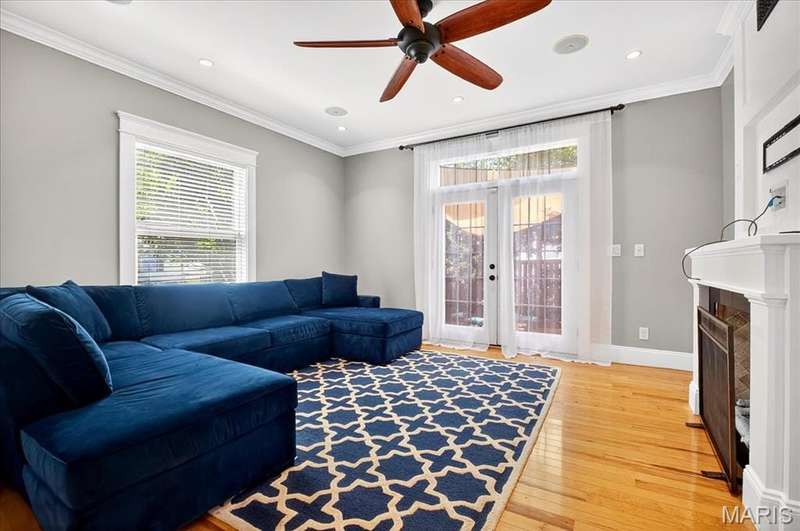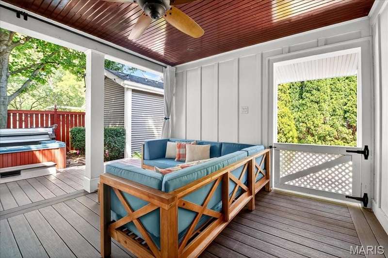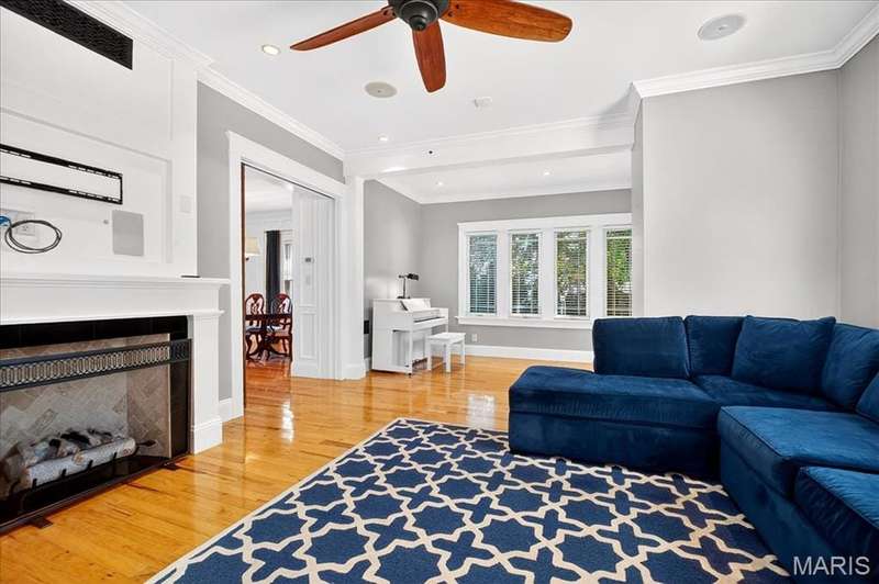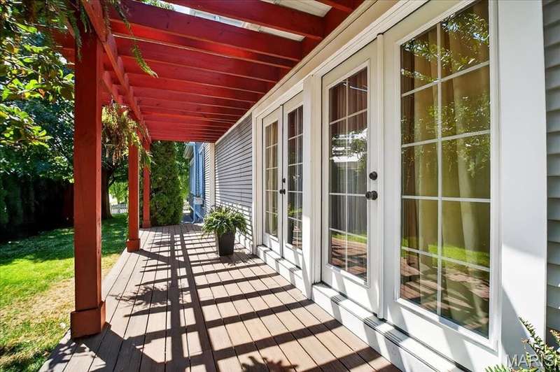 Listed as one of the 10 Most Beautiful Homes by DesignSTL, this exquisite 1906 gem blends historic charm with contemporary comfort. It has 4 bedrooms, 2.5 baths, 4 distinct outdoor living areas and a finished basement with separate play and study rooms. The main floor features high ceilings, dining and living rooms, radiant heat floors, convenient 1/2-bath and laundry, plus a kitchen with rich cabinetry, Bosch appliances, Jenn-Air fridge and granite countertops. Completing the 1st level is a primary bedroom with an outdoor terrace and on suite bath. 2nd-floor highlights include a spacious bedroom/office with a private balcony, two additional bedrooms and a beautifully-remodeled bath. Outside, you'll also find a courtyard patio, back porch lanai with hot tub, lawn irrigation system, oversized 1-car garage with space for a workshop/golf cart, and a 4-car driveway. This is a rare opportunity to live in a one-of-a-kind home in the heart of Old Town St Charles, easily walkable to Main Street restaurants, shops and the Katy Trail.