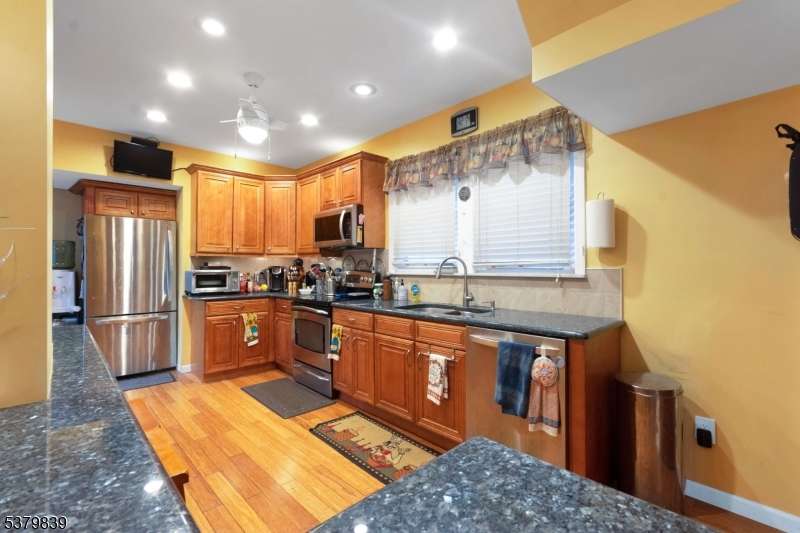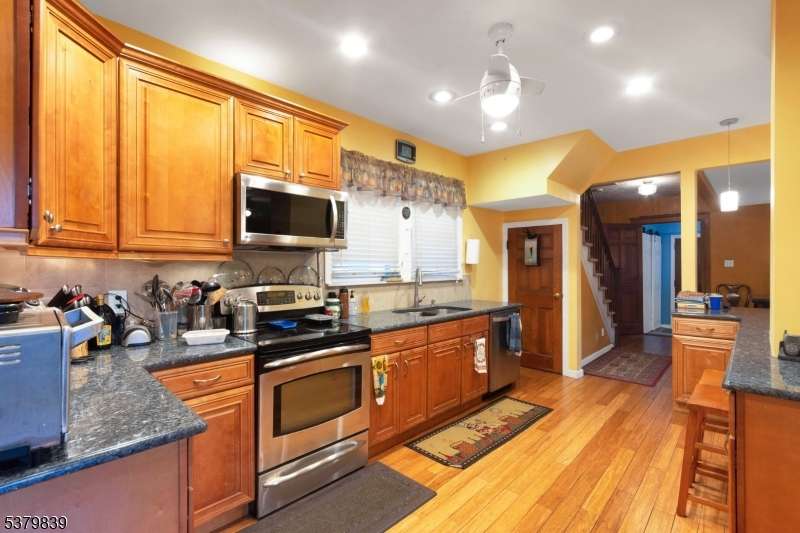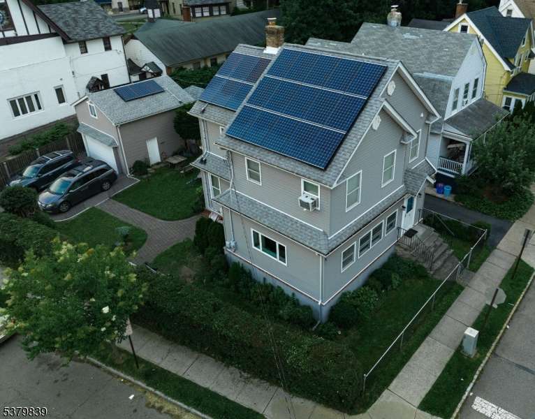 This expanded colonial home offers three bedrooms and a welcoming first-floor entrance, starting with a heated porch area. From there, step into the bright, open-layout living and dining areas perfect for entertaining and holiday gatherings. The space features wood flooring, upgraded appliances, recessed and pendant lighting, crown molding, granite countertops, and a stylish tile backsplash. A dedicated home office comes equipped with seven cameras, a network video monitor, and a full security system. On the second floor, the master bedroom boasts a cathedral ceiling, two spacious closets, and an En Suite bath with baseboard electric heating. The two additional bedrooms share a full bath, also with electric heating. Cooling is provided by an upgraded ceiling fan and a wall-mounted air conditioning unit. A walk-up attic adds valuable storage space. The basement includes a full bath, washer and dryer, and a sump pump. A 200-amp electrical panel features a plug-in port for a generator. Outside, the corner lot offers a backyard and side yard, along with a two-car garage that includes a bonus room on the second floor. The driveway, lined with pavers, accommodates up to three cars. Side doors at the foundation provide extra storage. SolarEdge panels on house and garage are owned. Renewable energy saving SREC credits have resulted in zero-balance utility bill. Local recreation programs in Colgate Park and Ginny Duenkel Municipal Pool. As is sale.