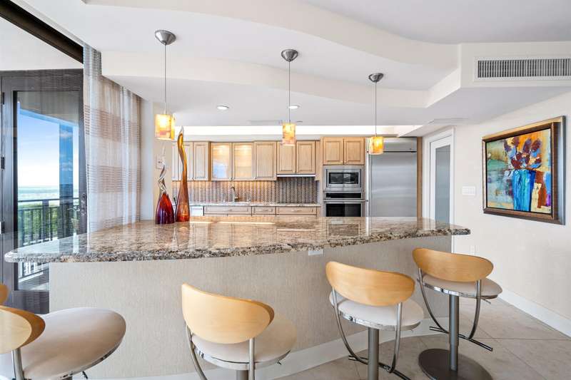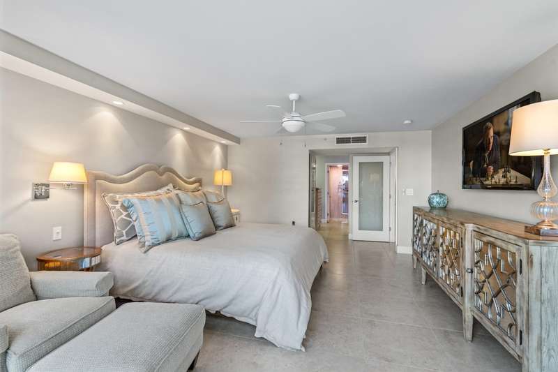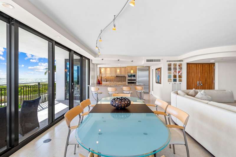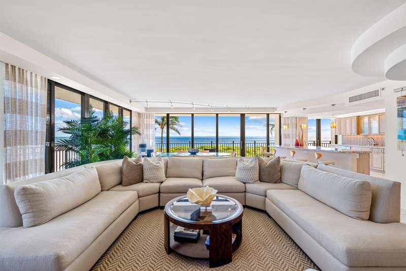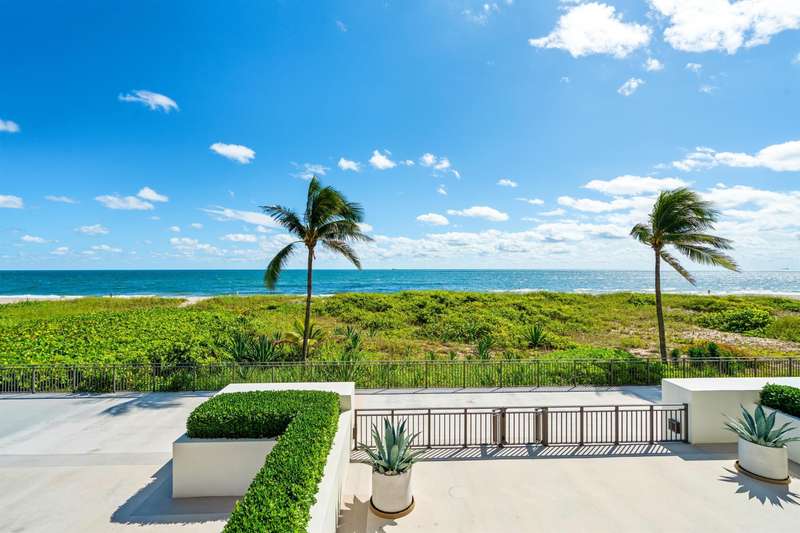 Stunningly updated residence designed by famed Boca Raton designer. This corner great room floor plan features an open kitchen that flows through walls of impact glass sliders to a spacious oceanfront balcony. The designer kitchen offers abundant storage, custom cabinetry, and high-end appliances. The great room showcases a custom media wall. A corner primary suite includes a beautifully fitted dressing room and a luxurious bath with soaking tub and glass-enclosed shower. The third bedroom is customized as a stylish office with built-ins. Enjoy boutique oceanfront living with a resort-style pool overlooking the Atlantic and direct access to miles of pristine sandy beach. Amenities include a club room, fitness center, and lobby with doorman. Pet friendly building!