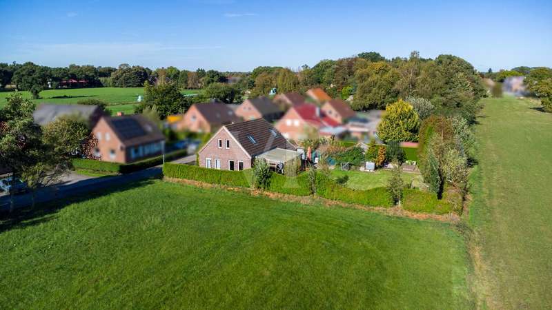 This modernized detached house is situated in a wonderfully quiet location on the edge of a field in Ochtelbur, a popular district of the municipality of Ihlow near Riepe. The property has been extensively renovated in recent years and brought up to a contemporary standard both technically and visually - ideal for anyone who wants to combine rural tranquillity, good connections and a solid home. The pleasant atmosphere is apparent as soon as you enter the house: a friendly hallway leads into the bright eat-in kitchen, which serves as a central meeting point for everyday life. Here there is space to cook, enjoy and socialize. Next door are a bedroom, a modern bathroom and a separate guest WC. An adjoining storage room and an extension reserve offer additional storage space and flexible usage options - for example as a utility area, study or hobby room. Thanks to the ground-floor living situation, the first floor can be used entirely without steps and is therefore also ideal for senior living. A hallway and two cozy bedrooms await you on the top floor, which are ideal as children's rooms, guest rooms or work rooms. The loft conversion was carried out in 2022, as was the replacement of the drainage system and some radiators. The east and north sides of the house were also repointed, giving the building a well-kept, solid appearance. The modernizations in 2018 and 2019 were particularly extensive: the roof truss and roof were renewed, as were the windows, floor slab and parts of the floor slab, including a horizontal barrier. In addition, the electricity and gas pipes, heating system, gables, bathroom and guest WC were brought up to date. The outdoor area invites you to relax: a covered summer garden offers weather-protected space for cozy hours in the countryside. The garden itself impresses with its low-maintenance layout and quiet location at the end of a cul-de-sac - ideal for families, couples or those seeking peace and quiet. Two garages complete the offer. The plot is a leasehold property. We will be happy to provide you with all important information on request. This detached house combines solid substance with modern fittings and a location close to nature. A home that impresses with its well thought-out layout, comprehensive modernization and idyllic surroundings - ready to move into, well maintained and with a high quality of life.