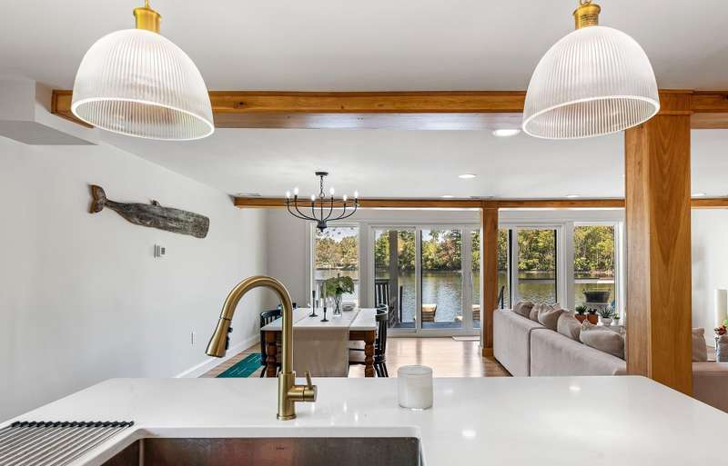 WATERFRONT SUNRISES AWAIT! Completely renovated from top to bottom, this stunning 4-bedroom, 3-bath home offers modern living with unmatched views. Features include a spacious open layout, ample parking, and a private bonus suite with its own entrance—perfect for guests, in-laws, or rental income. Best of all, enjoy peace of mind with public water and sewer—no septic or well to maintain!