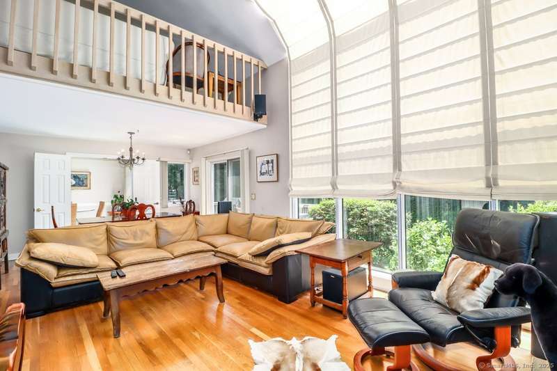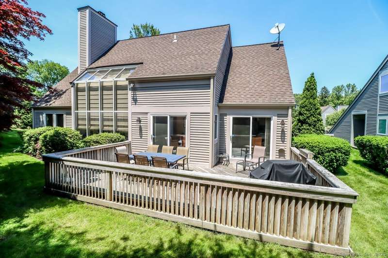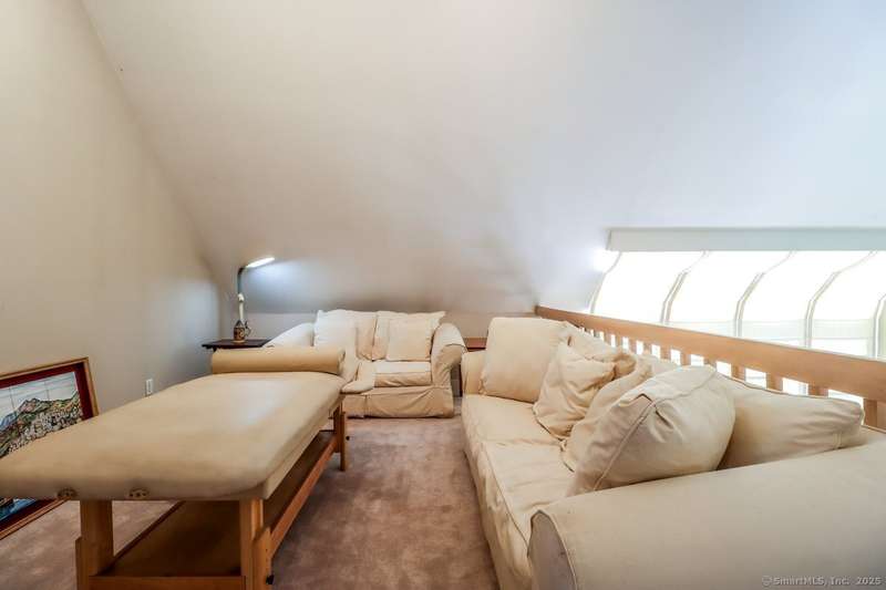 The Best of Both Worlds - A free-standing townhome with all outside maintenance taken care of! Tucked along the scenic Norwalk/New Canaan border, this thoughtfully designed townhouse combines the spaciousness of a single-family home with the ease of community living. Sunlight fills the open-concept living, dining, and kitchen areas, creating a warm and welcoming atmosphere. A generous deck just off the main living space invites you to enjoy your morning coffee, relax at sunset, or simply soak in the natural surroundings. The main level offers a light-filled living room, an open kitchen and dining area, and a peaceful primary suite with a private bath. Upstairs, a cozy family room loft area and two additional bedrooms offer privacy and flexible living options. The lower level - currently unfinished - presents a unique opportunity: a blank slate ready for a media room, home gym, or extra bedroom. Above the garage, a separate room with its own private entrance is ideal for a home office,