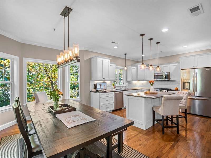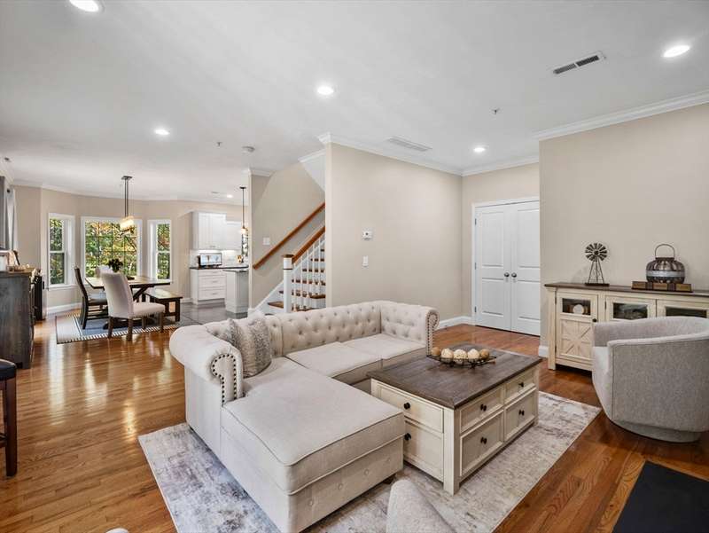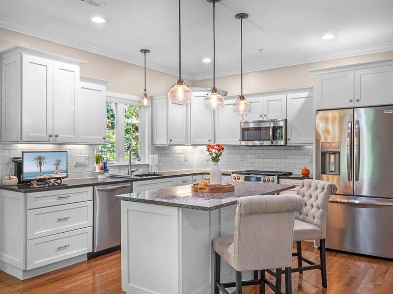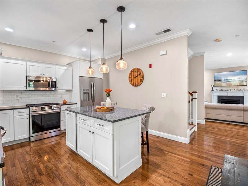 Welcome home to this beautifully maintained END UNIT townhome! This is a perfect blend of comfort, style, and convenience. From the moment you step inside, you ll be greeted by an inviting open floor plan filled with natural light & gleaming hardwood floors.The spacious kitchen features modern cabinetry, GRANITE countertops, and a breakfast area that flows seamlessly into the dining and living space ideal for entertaining or quiet evenings at home. The family room with gas FIREPLACE provides the perfect spot to relax after a long day. Upstairs, you ll find 3 bedrooms, including a serene primary suite with a walk-in closet, private bath & laundry. The finished lower level adds valuable living space, possible 4TH BEDROOM, perfect for a home office, gym or media room. Outside, enjoy a private deck overlooking landscaped grounds, offering a peaceful retreat for outdoor dining and gatherings. Additional features include: attached GARAGE, central air, and plenty of storage!