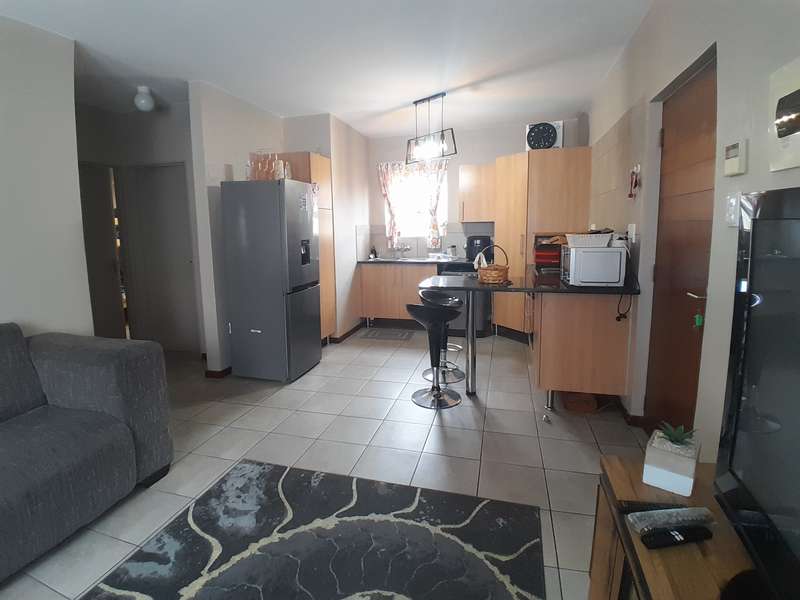 Main Bedroom: Spacious with an en-suite bathroom. Second Bedroom: Generously sized, ideal for a guest room or home office. Open Plan Living: A combined lounge and kitchen area, perfect for entertaining and modern living. Kitchen: Fully equipped with modern appliances, plenty of counter space, and ample storage. Bathrooms: 2 (Main bathroom and en suite for the master bedroom). Flooring: High-quality finishes, stylish tiling.