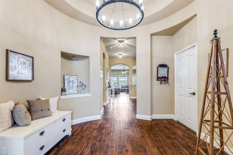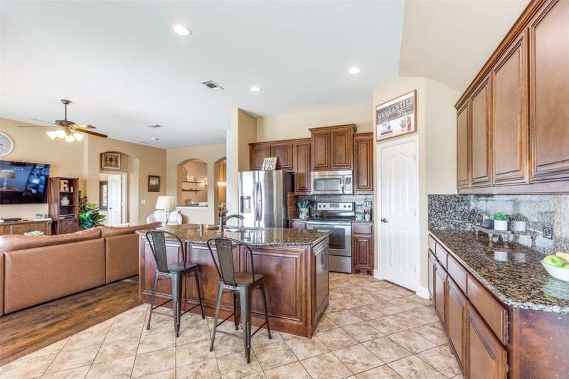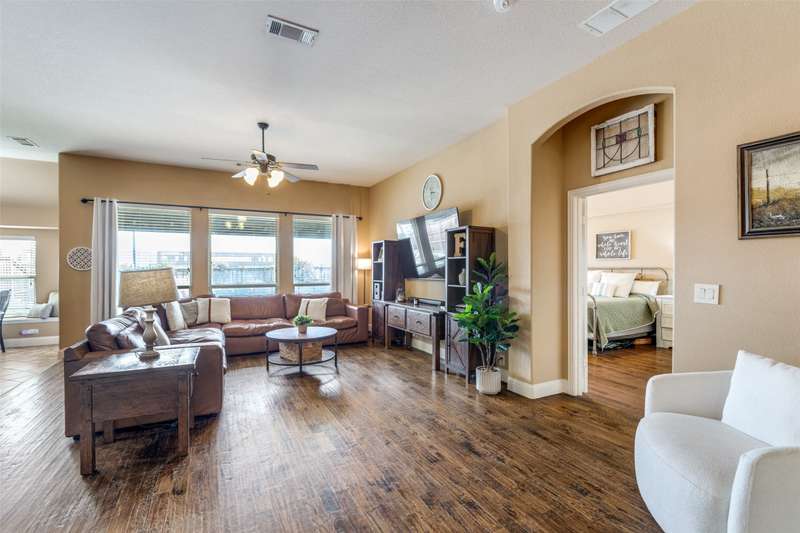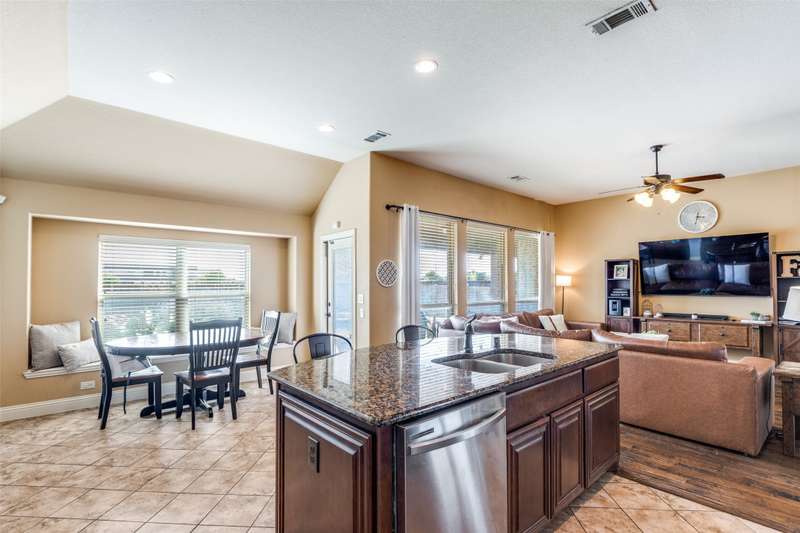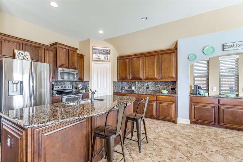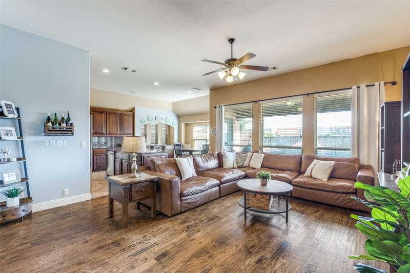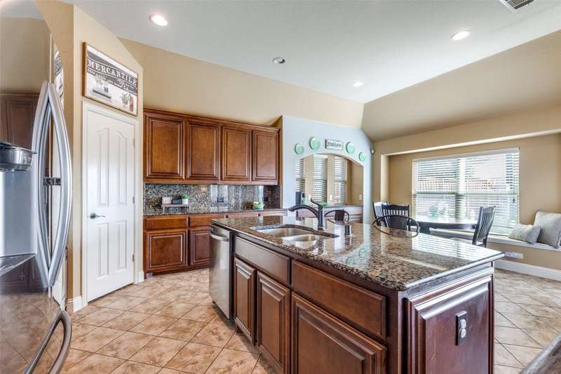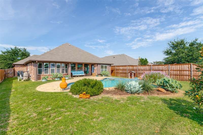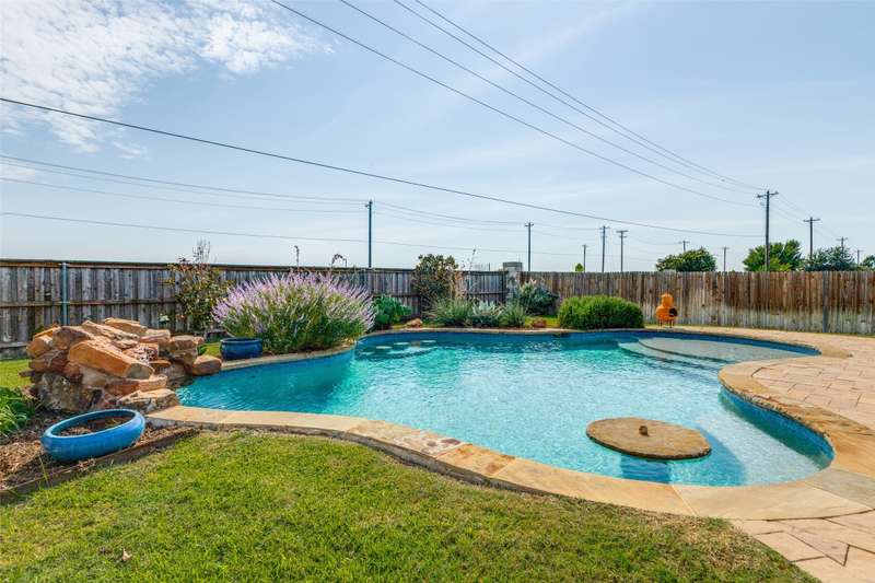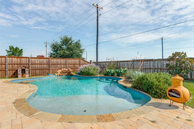 Welcome to this stunning Bloomfield home, thoughtfully designed for both everyday living and entertaining, featuring your own private backyard POOL OASIS! This spacious 4 bedroom residence seamlessly combines comfort, style, and functionality. The open-concept floor plan offers a large living room, two Dining areas, and a Breakfast Bar perfect for gatherings. One of the generously sized bedrooms can easily be converted into a home office, providing flexibility for remote work or study. The split primary suite is a true retreat, complete with a bay window sitting area overlooking the poolan ideal spot for relaxing with a book. The heated chlorine pool is designed for year-round enjoyment, featuring a 6-foot depth, built-in water table with bar stools, and a shallow sun shelf perfect for children. The expansive backyard offers endless possibilities, from creating a putting green to adding play structures for the family. Additionally, highlights include a 2.5 car garage with extra space for a workbench, home gym, or storage. Located in desirable Cross Oak Ranch, residents enjoy lakeside amenities including a dock, picnic areas with grills, walking and jogging trails. Conveniently positioned near Frisco attractions such as The Star, PGA of America's championship golf courses and the upcoming Universal Kids Resort, this home offers both relaxation and excitement just minutes away.BUYER WILL BE RESPONSIBLE FOR PURCHASING THEIR OWN SURVEY. LISTING AGENT IS RELATED TO SELLER