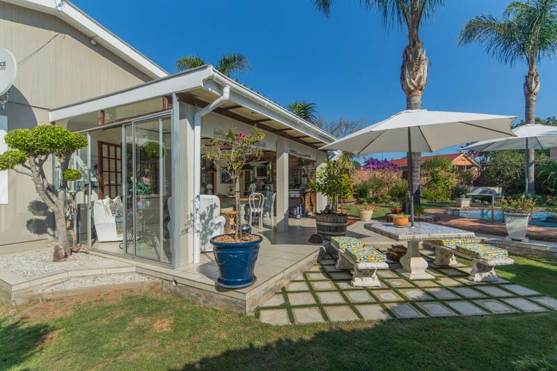 Discover unparalleled luxury and sophistication in this stunning 3-bedroom home nestled in Levyvale, Uitenhage. Unlike anything you've encountered, this masterpiece is a harmonious blend of modernity and timeless elegance. Upon entering the kitchen, your eyes are drawn to the exquisite craftsmanship of the cabinetry and high-end finishes that elevate the space. The carefully chosen colour palette, blending earthy tones with touches of Mediterranean blues and whites, creates a soothing ambience that enhances every culinary experience. he big, modern kitchen boasts a large square island that not only ties the room together but also provides ample space for appliances like a double fridge, dishwasher, and washing machine, all seamlessly integrated into the sleek cabinetry. Moving from the kitchen into the open-plan living room is a seamless experience, thanks to a large and gorgeous skylight that bathes the area in natural light. This connection creates a welcoming and homey atmosphere that's hard to put into words—it's modern and sophisticated yet retains that cozy feeling of a true home. The hallway reveals a beautifully designed bathroom on the left, reminiscent of a villa in Greece with its elegant touches and timeless aesthetics. Adjacent to it is a separate room for the toilet, providing convenience and privacy. Each of the three bedrooms is adorned with built-in cupboards, ensuring ample storage space while maintaining a cohesive vibe throughout the home. The main bedroom features a charming terrace that opens up to the garden, offering a perfect spot for morning coffee or quiet moments of relaxation. Stepping back into the living room, you're greeted by a welcoming big veranda, inviting you to bask in the serenity and beauty of the outdoors. This expansive outdoor space leads you through garden tables and chairs to a perfectly round swimming pool, surrounded by a meticulously maintained garden that's both aesthetically pleasing and functional. The property also includes a substantial outside building currently operating as an after-care school, accommodating over 30 children while adhering to all legal requirements. With four toilets strategically placed throughout the property, including one for every 10 children in the school, convenience and comfort are top priorities. Currently, it only operates from 13h00 to 17h00 and it generates more than enough income to afford the bond. However, this space offers versatile opportunities for the discerning buyer.' For added practicality, the property boasts four water tanks connected to the gutters, providing water for garden and pool purposes. An integrated irrigation system makes it easy to maintain the lush garden, while a full alarm system with outdoor beams and electrified fencing ensures peace of mind and security. In summary, this property is a rare find—a harmonious blend of luxury, functionality, and versatility that must be seen to be fully appreciated. Schedule your viewing today and experience the unmatched allure of this extraordinary home in Levyvale, Uitenhage. Please note, that while we strive for accuracy, we're not liable for any errors in this listing.