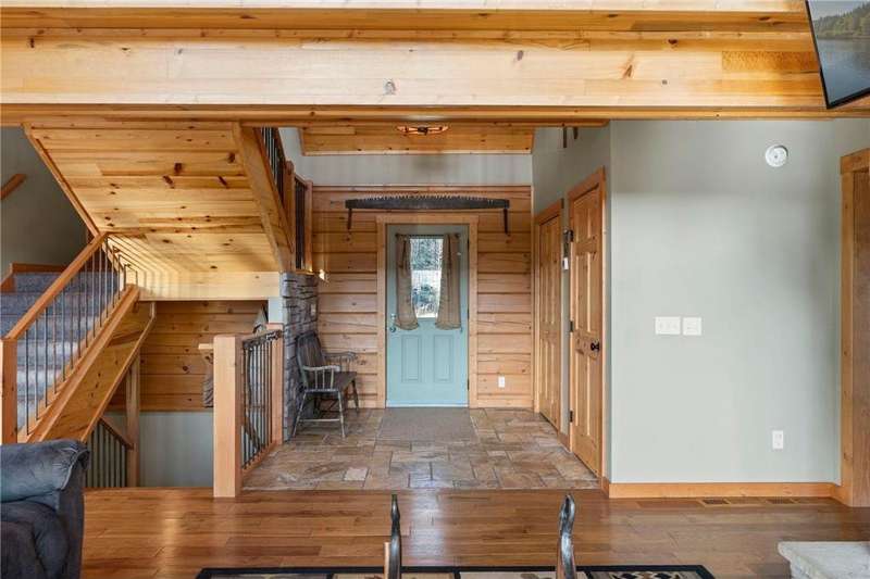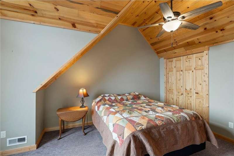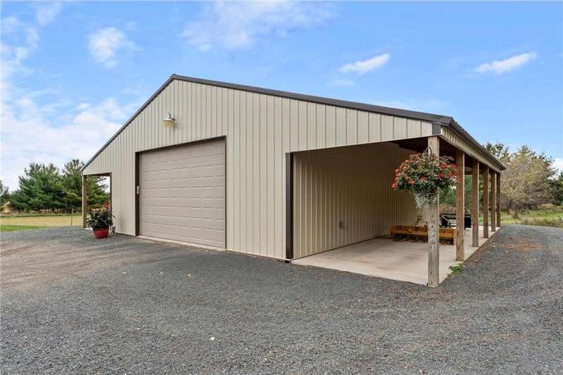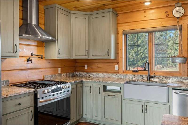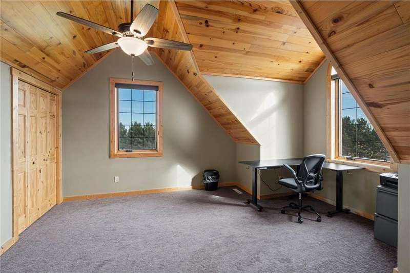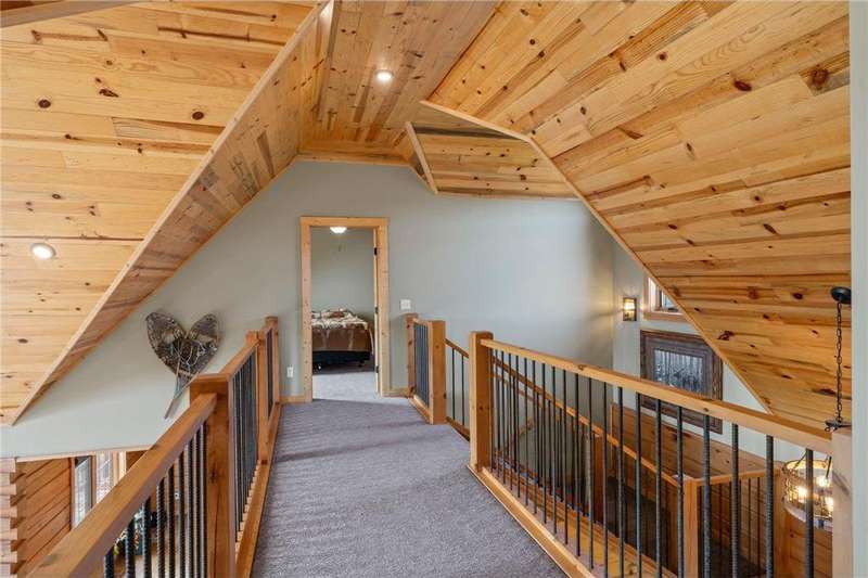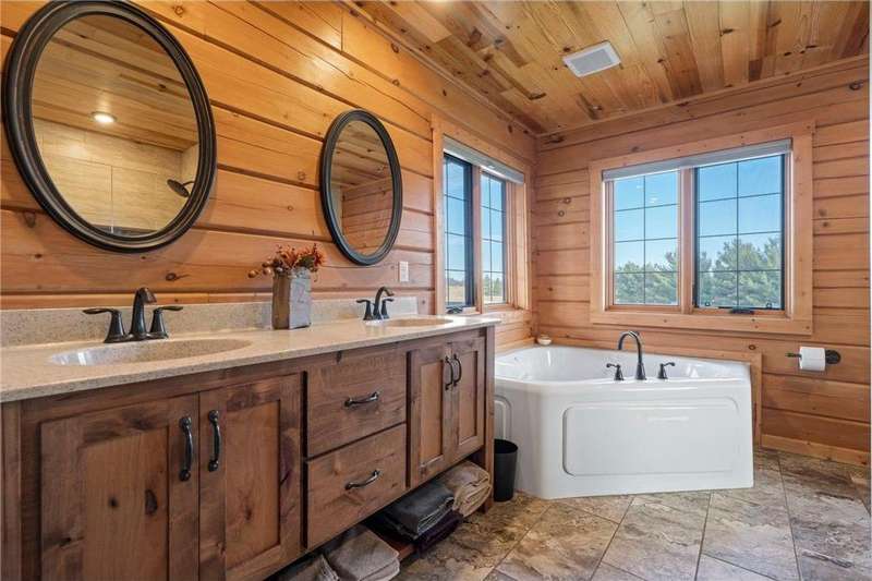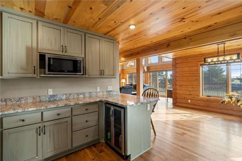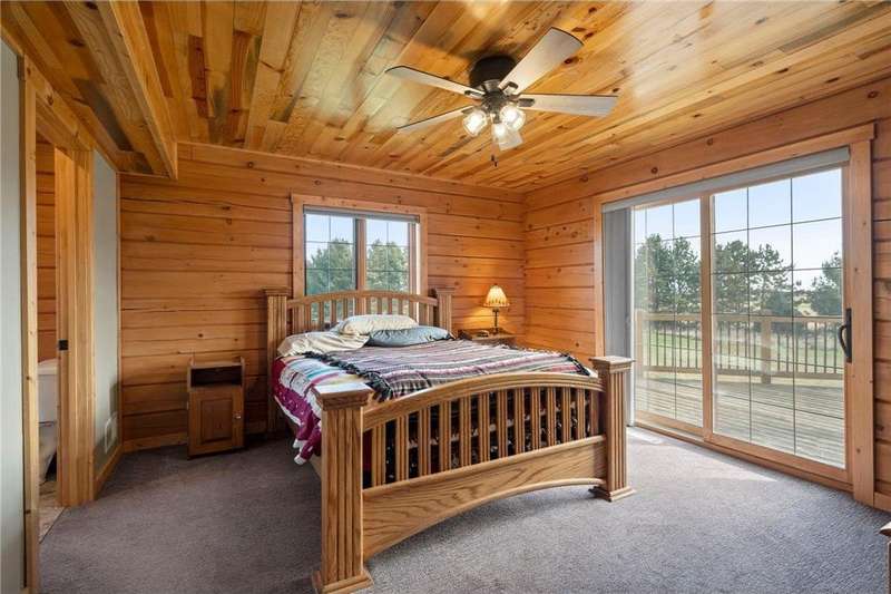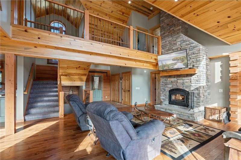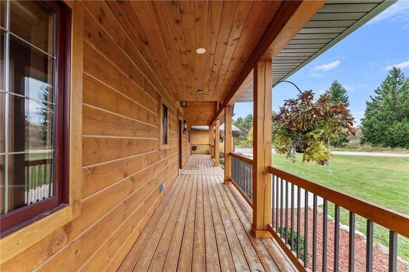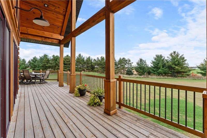 Welcome to your private log home retreat in Lindstrom! Nestled on 9.5 acres of rolling land with beautiful views and peaceful walking trails, this one-owner home offers the perfect blend of rustic charm and modern comfort. The open-concept main level features soaring ceilings, a spacious kitchen, and a cozy living area-perfect for gatherings. Enjoy a main floor bedroom and bath for convenience, plus a workspace with stunning views of the property. Upstairs, you'll find two additional bedrooms. Step outside to take in the natural setting, explore the trails, or relax on the deck or porch. Newly built pole building that is 50x40 with overhangs and 40x30 enclosed. Dog kennel attached to pole building stays with the property. Come check it out. No sign on property.