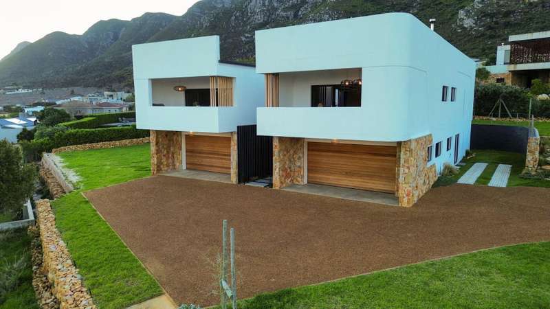 EXCLUSIVE SOLE MANDATE: Commanding a prime position in the exclusive enclave of Chanteclair, this architecturally striking residence offers a rare confluence of refined modernity, MINIMALISTIC ELEGANCE, and awe-inspiring natural beauty. Perched on an expansive 1,766m?? stand, with a generous 557m?? of impeccably curated living space, this home is designed to evoke a sense of serenity and elevated living. Drawing inspiration from the clean lines and natural materials of SCANDINAVIAN architecture, the home exudes an understated sophistication?Çöwhere every detail has been thoughtfully considered for both form and function. Think warm, natural textures, clean lines, ABUNDANT NATURAL LIGHT, fresh greenery and a feeling of GROUNDED PEACE that fills every room. The residence can be seamlessly configured as a single six-bedroom family home or elegantly divided into TWO fully self-contained three-bedroom residences, each with its own designer kitchen, living areas and double garage. Expansive double-volume glass sliders subtly demarcate the two spaces while preserving the open flow of light and air. Wall-mounted Kaminofen wood-burning fireplaces serves as a focal point in the main living areas, framed by polished screed floors and custom cabinetry. The GOURMET KITCHENS are appointed with premium Grundig appliances and gas hobs, perfect for those who value culinary excellence. Ambient lighting, bespoke finishes, and an intentional absence of visual clutter create a tranquil atmosphere that speaks to the essence of luxury minimalism. Each wing of the home features a dedicated WORK-FROM-HOME space, ideal for today?ÇÖs EXECUTIVE lifestyle. The property is also equipped with state-of-the-art BACKUP POWER (5kVa inverter with five batteries), dual solar geysers, and an alarm system, ensuring seamless comfort and security. With panoramic views of the Atlantic Ocean and Kleinrivier Mountains. This residence is a sanctuary for those who appreciate REFINED DESIGN, immaculate craftsmanship and flexible living. Uncompromised.