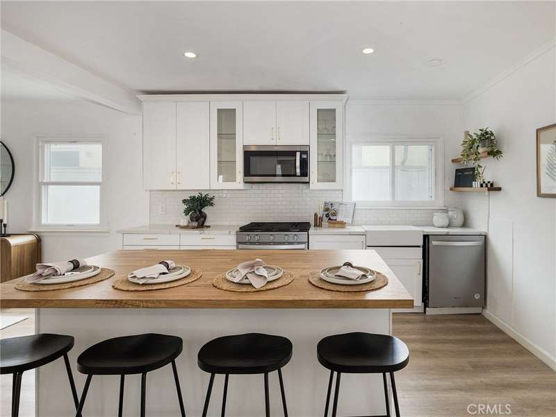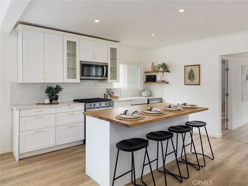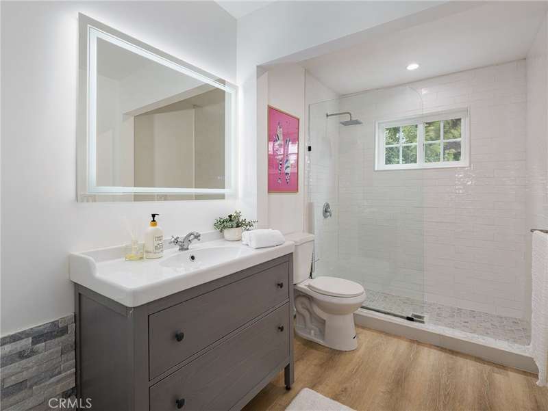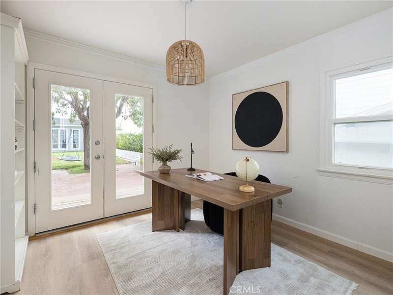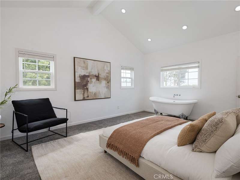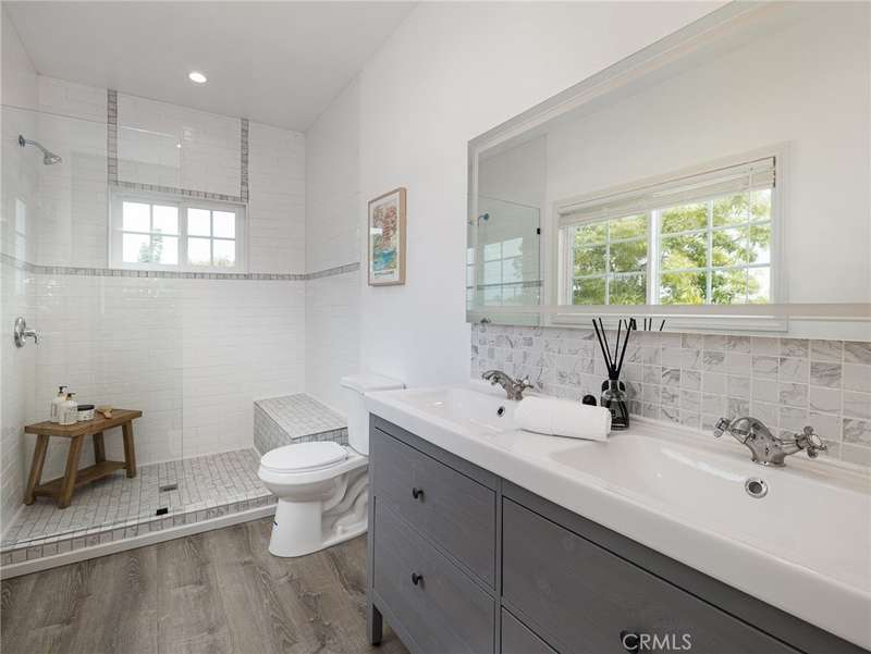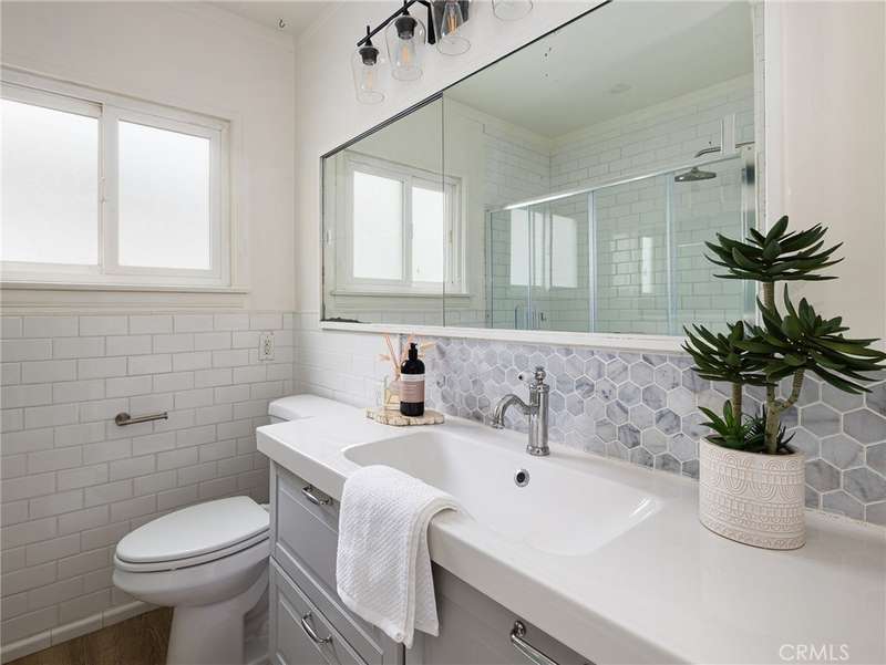 Updated in 2024, this 2600 sq ft+ 5-bedroom, 3-bath residence blends modern comfort with versatile living. The open living room seamlessly connects the dedicated dining room to an oversized kitchen with a large island, new cabinetry, oven, and refrigerator. Upstairs, the expansive primary suite boasts cathedral ceilings, a large walk-in closet, and a full bath with dual sinks. Downstairs, the front bedroom offers French doors to the backyard and access to a finished attic—ideal for a playroom or office. The third bedroom features two closets, while the sizable fourth and fifth bedrooms include closets with built in-features and they share a spacious Jack and Jill bathroom. A huge laundry room opens to a large side yard, while the backyard itself is designed for both relaxation and flexibility with multiple private sections, a sitting area, and a bonus room that works perfectly as a guest room, office, or gym. Additional highlights include new laminate flooring throughout, updated bathrooms, abundant natural light, double and triple-paned windows, AC, an EV charger and a fully paid solar system!