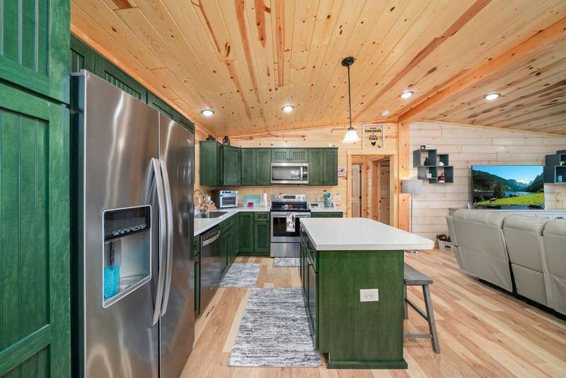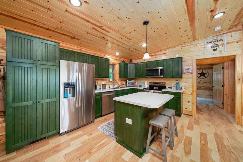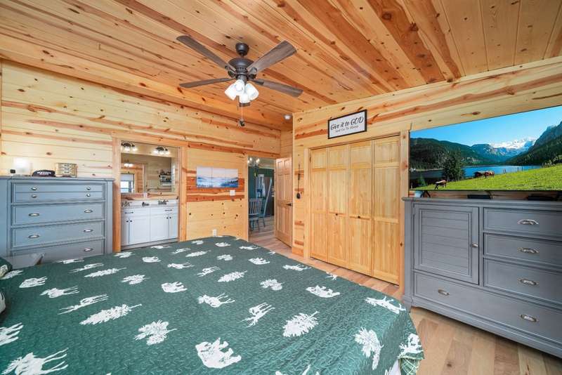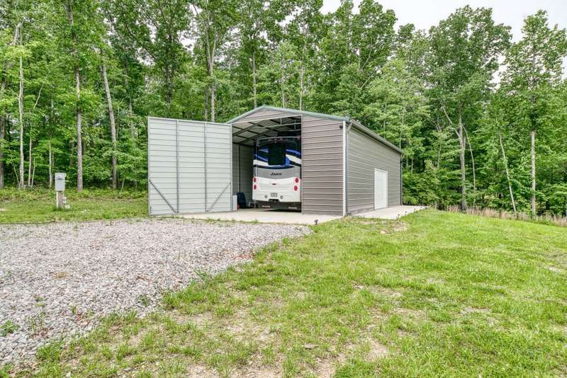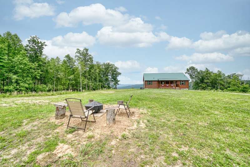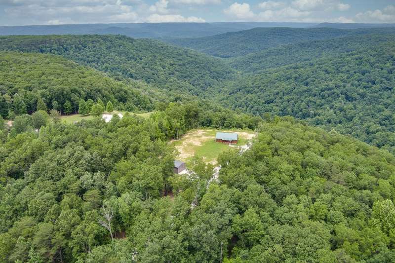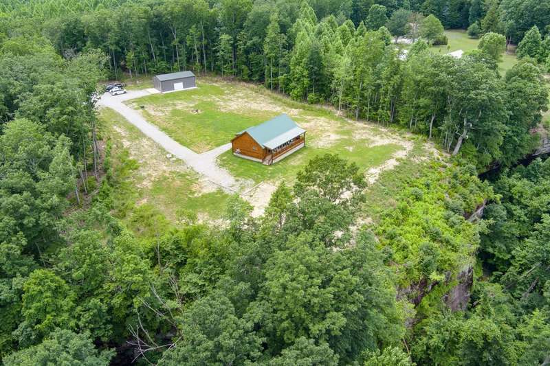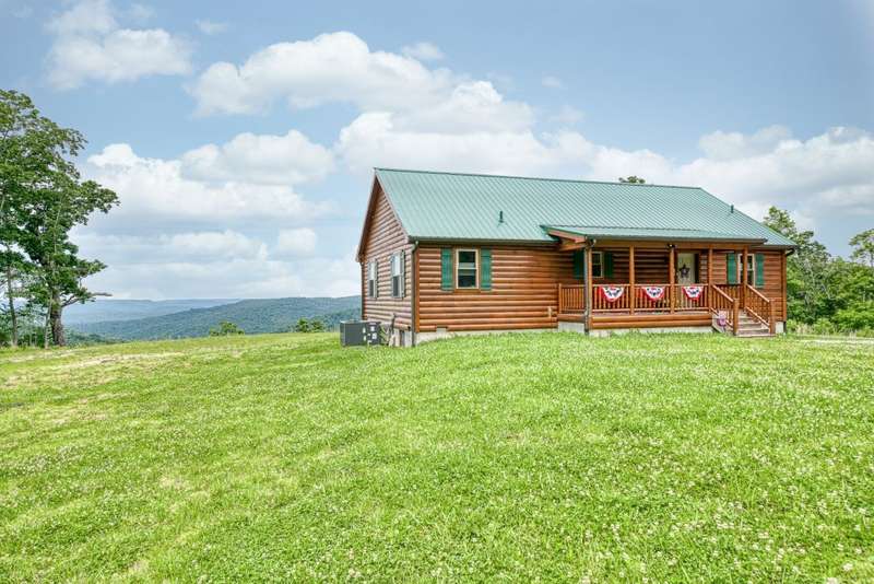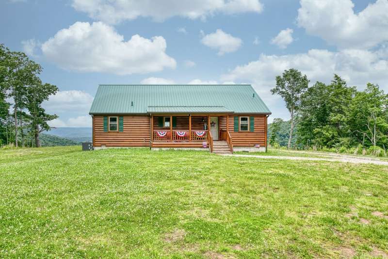 MILLION DOLLAR VIEW of the MOUNTAINS. Amish built cabin on the Bluff with Mountain & Valley views on 5.14 acres. 3 large bedrooms with two large baths. Kitchen has stained maple cabinets with soft-close drawers, a pantry, and an island with electricity. Floors are hickory, tankless water heater, all appliances including freezers convey. 4 Foot high crawl space with lights, concrete floor, and spray foam insulation. House has 200 AMP service with whole-house surge protection and wired for a generator. 40 X 24 garage with 13 foot high door and a 10 foot garage door that can fit three cars or an RV on top of 6 inch high-strength concrete base. Garage has its own 200 AMP service with two 110 and two 50 AMP outlets, water and 2 sewer hookups next to the garage. House and garage have gutters. ALL utilities underground. Gigabit internet service. The home has never been rented but could be as a vacation house. You could host 2 RVs there as there is plenty of room. Sewers, electric and water hookups at garage. Has 2 wonderful porches. 42 foot covered Bluff Porch overlooking the mountains. 20-foot covered porch overlooking the yard, driveway, and garage. Porches have wood ceilings also. Home is LIKE NEW and CLEAN. Will consider selling fully furnished. Centrally located 90 miles to Nashville, Chattanooga, and Knoxville on good paved roads. Sparta, Cookeville, and Crossville are nearby for shopping and dining. Buyer to verify all measurements and information to make an informed offer.