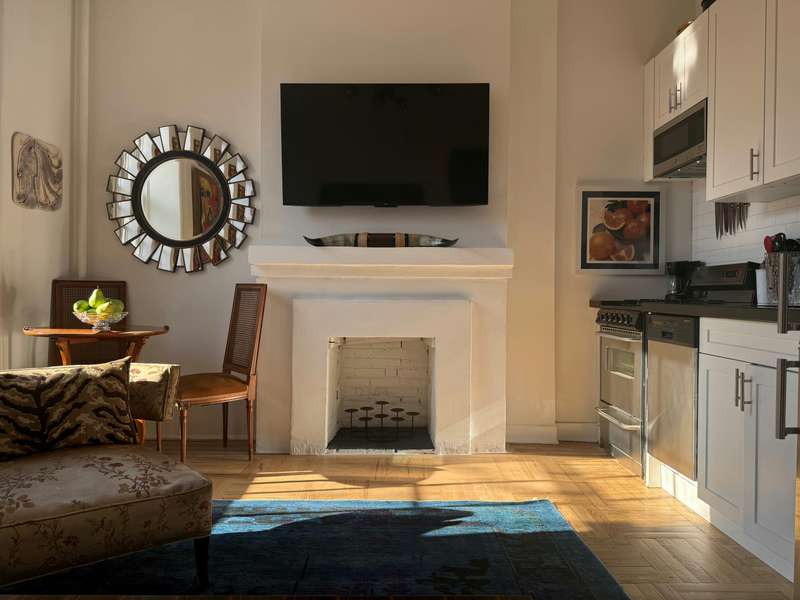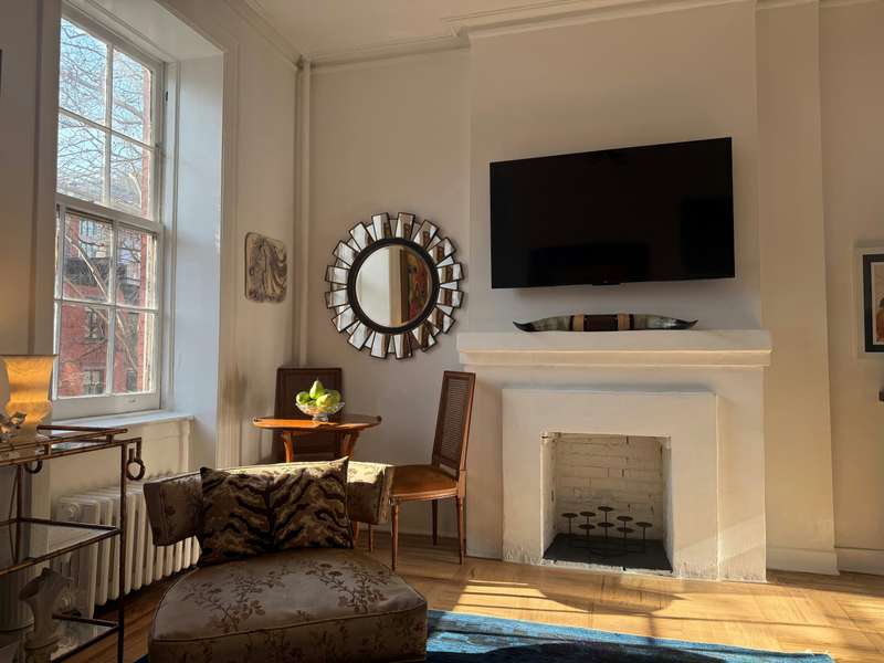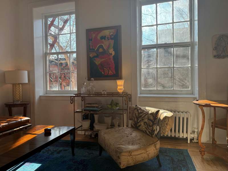 This furnished 1 BR apartment has been beautifully renovated and boasts 11" ceilings, South & North expos from over-sized windows, oak hardwood floors with mahogany inlay, an open kitchen with granite counters and stainless appliances, a quiet BR with an en suite, windowed bath. The professionally FURNISHED apartment is styled with an eclectic mix of antique and modern pieces blended with original artwork and cozy accents. Fully outfitted including linens, dishes and stemware. This historic, walk-up (3 flight) building is located on the best tree lined block in the West Village. No smokers, shares or pets permitted.