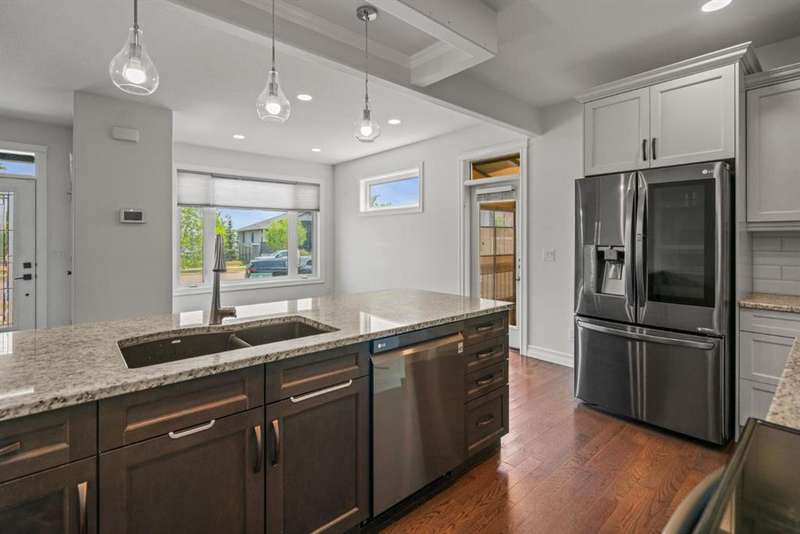 Welcome to this beautifully crafted 3 bedroom 2.5 bath home nestled in the highly sought after Valleyview west community. This home featuring gemstone lights is in perfect view of the playground, lake, and walking paths and just just steps away from the brand new high school- a dream location for families. Step inside to discover quality craftsmanship throughout featuring granite countertops brand new stove and microwave, and massive walk thru pantry- perfect for all your storage needs. The main floor also includes convienient main floor laundry. Upstairs unwind in the bonus room while taking in stunning views, or retreat to the primary suite, complete with a walk-in closet and ensuite with glass walk-in shower. Enjoy the oversized attached garage with floor drain, water taps and added bonus of paved back alley. The unfinished ICF basement offers endless possibilities to customize the space to your needs. Relax outdoors in the low maintenance backyard and don't miss the incredible "Cave" in the back- perfect for hobbies, storage, or entertaining. Don't forget about the RV parking space at rear. This home truly has it all- style, space, and views with incredible location. Don't miss the opportunity to make it yours!