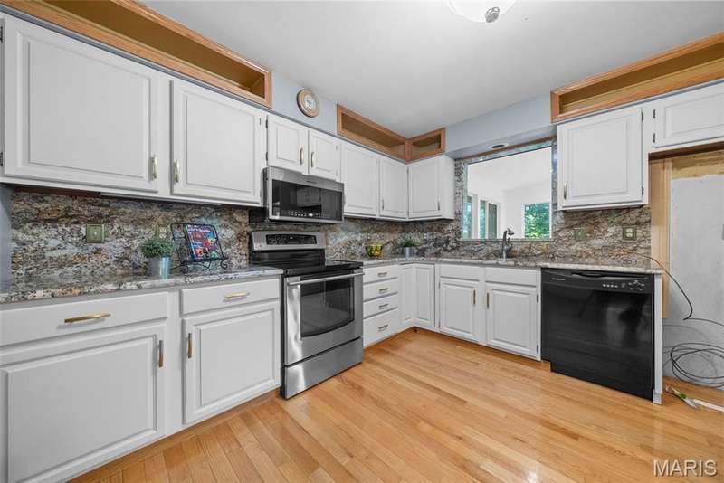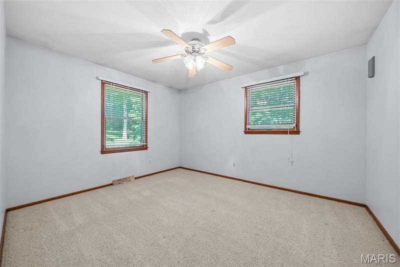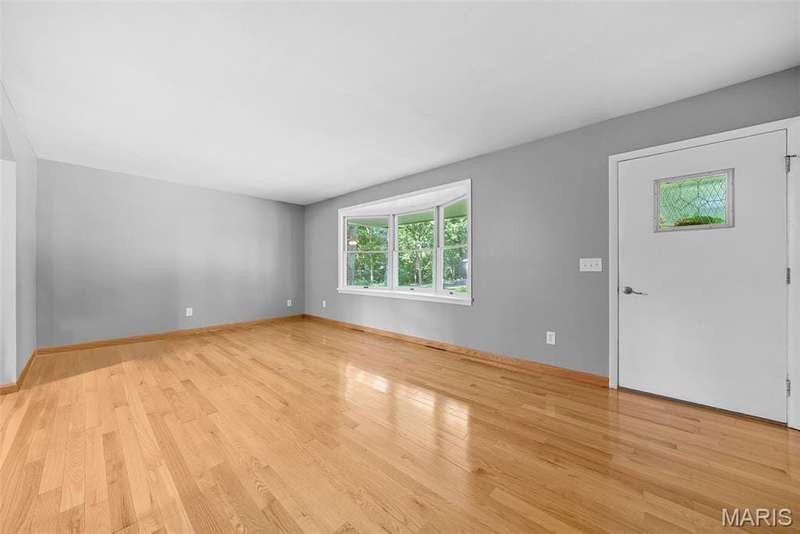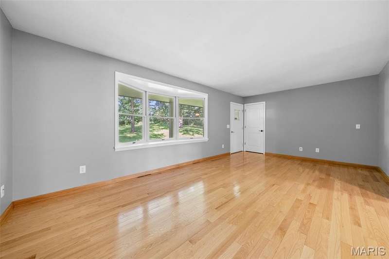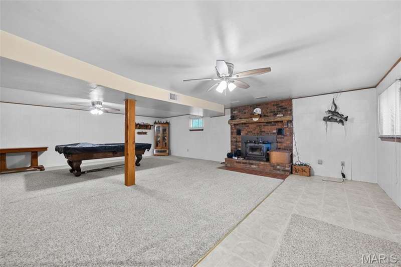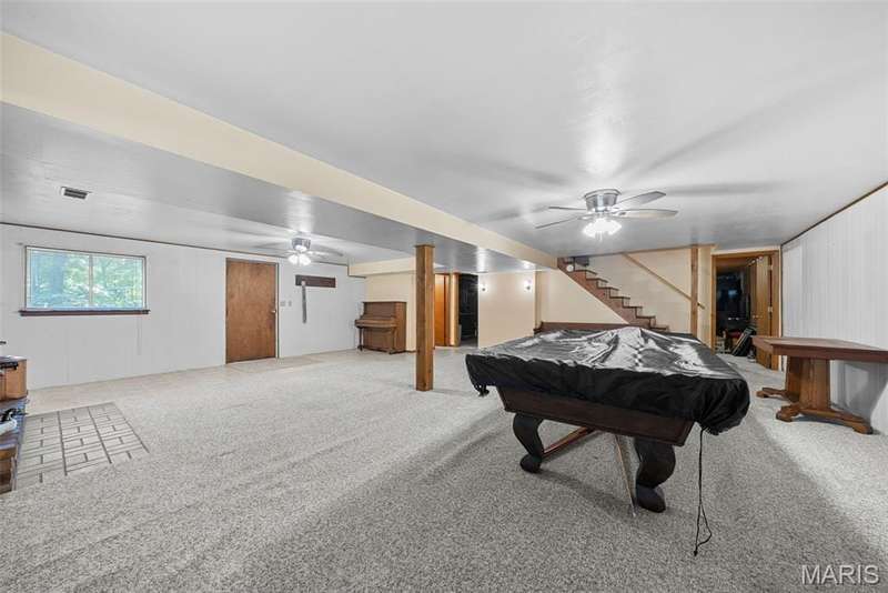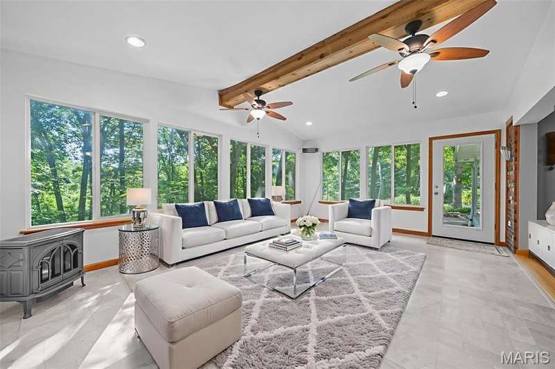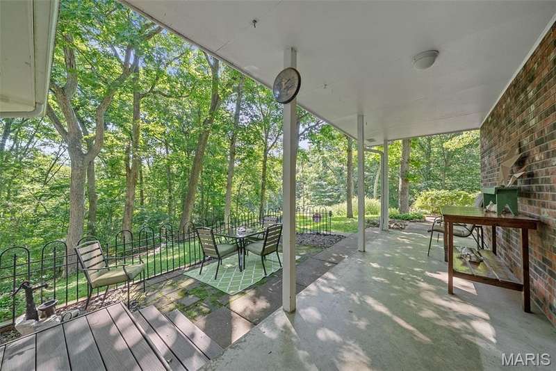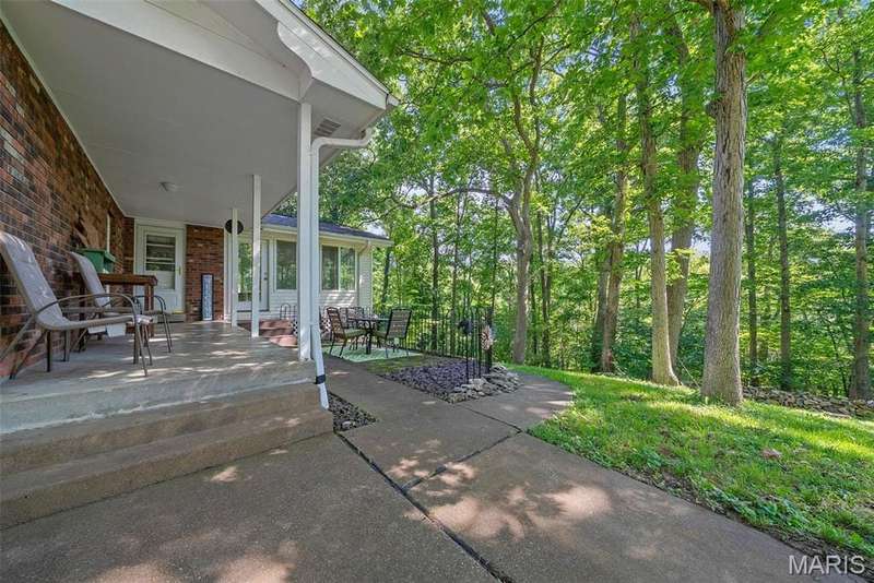 Discover the perfect blend of privacy, nature, and convenience in this beautifully updated ranch home nestled on 3.99 serene acres in unincorporated St. Charles County. Backing directly to the scenic Incline Village Golf Course, this property offers breathtaking views, abundant wildlife, and a peaceful, wooded setting ideal for nature lovers and golf enthusiasts alike. Step inside to find a refreshed interior featuring a remodeled kitchen with granite countertops, newer stainless steel appliances, and updated flooring. Both the primary ensuite bath and hall bath have been stylishly renovated, making this home truly move-in ready. The spacious four-season room, equipped with its own heating and cooling, invites you to enjoy year-round panoramic views of your private retreat. 3 generous main-level bedrooms, 2 full baths, and a main-floor laundry conveniently located near the bedrooms, this home is both functional & family-friendly. The walk-out lower level is partially finished & includes a cozy fireplace, large recreation room (pool table stays!), a half bath, & additional laundry hookupsperfect for entertaining or multi-generational living. Car lovers, hobbyists, or those needing extra storage will love the attached 2-car garage, detached 2-car garage, & additional outbuilding/storage shed. Located in the highly rated Wentzville School District, this unique property offers all the privacy of country living with the benefits of nearby amenitiesand best of all, no HOA fees!