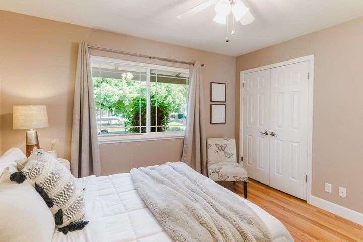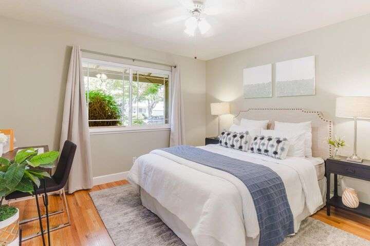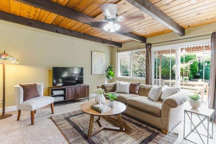 Meticulously maintained and truly move-in ready, this Pinehurst gem welcomes you with an open, inviting floor plan on an idyllic tree-lined street. The updated kitchen features granite counters, high-end stainless steel appliances, and freshly refinished hardwood floors that gleam throughout most of the home. With 3 bedrooms, 2 fully updated bathrooms, and over 1,700 square feet of living space, the home balances comfort and functionality. The family room features its open-beam tongue-and-groove knotty pine ceiling, while custom paint, upgraded molding and trim, and thoughtfully designed low-maintenance yet lush landscaping add style at every turn. Step out from the primary suite to a redwood deck and private hot tub retreat the perfect spot to unwind. The curb appeal shines, but the backyard is where lifestyle takes center stage, blending relaxation and entertaining. Living here also means access to the sought-after Pinehurst neighborhood amenities, including the private community pool and cabana club, all within walking distance. Add in the easy commute to top Silicon Valley employers and recreation, and youll see why this home is a rare find.