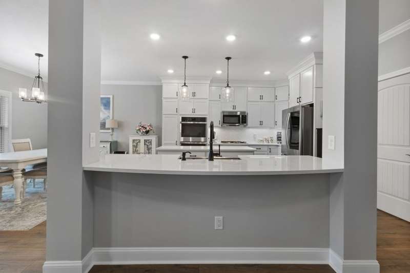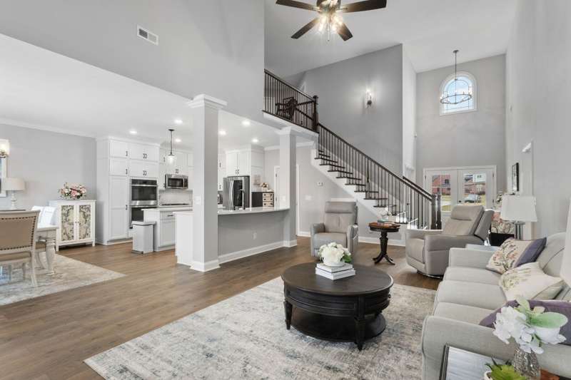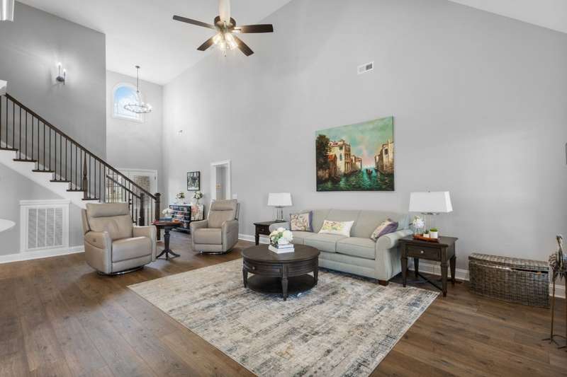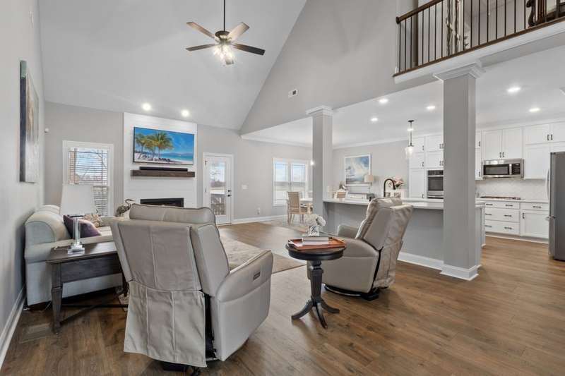 This is an excellent opportuning for a buyer to purchase an upscale home! The floor plan has the best VIBE and all the upgraded features! It has an open concept, but it has many private areas to relax and chill. The bedrooms are all perfectly spaced apart, so that everyone has their own space and bathrooms! The primary and guest bedrooms are downstairs and there are two bedrooms upstairs with a bonus room! There is a formal dining room with a coffered ceiling that can be also used as an office. The primary suite is every owner's dream with an alcove with beautiful arched windows for a sitting area, a large shower, and a soaking tub in the large bathroom! The laminate flooring is amazing throughout most the main floor, the bathrooms have porcelain tile, and the upstairs that is mostly carpeted areas with some laminate and tile. The exterior of this home is all brick with stone accents, and it has a 3 car garage, concrete driveway, covered front porch, deck and a patio! To sweeten the price, the seller is adding the refrigerator, washer, and dryer! The seller is ready for a qualified buyer to have very favorable terms, so don't miss this opportunity!