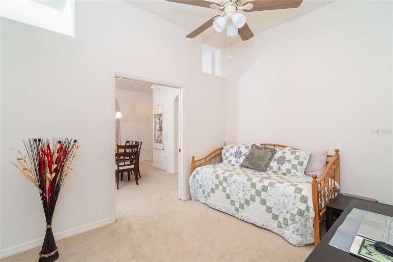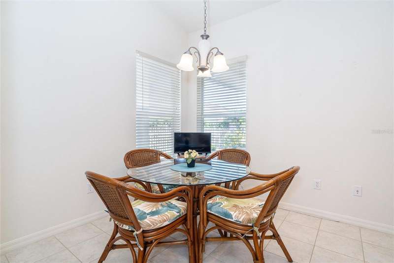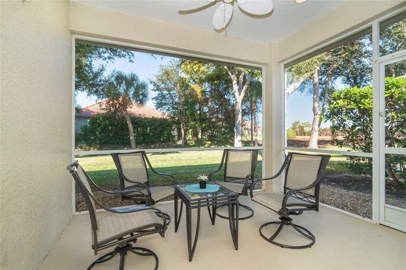 Welcome to this inviting 2-bedroom, 2-bath villa with a versatile den located in the highly sought-after, gated community of Oak Forest. The den provides flexible space that can easily serve as a home office, craft room, or extra sleeping area for guests. Step inside to find vaulted ceilings throughout, creating an open and airy feeling of spaciousness. The living and dining room combination offers an ideal setting for both entertaining and relaxing. The large kitchen features abundant cabinetry and a cozy breakfast nook—perfect for casual dining. The primary bedroom includes a spacious en-suite bath, while the guest bedroom and second bath are conveniently located for privacy and comfort. Enjoy serene mornings or peaceful evenings on the screened lanai, where you’ll appreciate beautiful views of wooded areas and tranquil water. Oak Forest is a maintenance-free, gated community with very reasonable HOA fees and is located in an X flood zone, meaning flood insurance is not required. Residents enjoy a variety of social events and amenities, including potluck dinners, catered events, tennis, pickleball, bocce, a heated pool, and card games. Just a 10-minute drive to Historic Dearborn Street, where you can explore boutique shops, fine dining, the weekly Farmers Market, and live music in Pioneer Park. The area also offers fantastic fishing, boating, and relaxing days on the beautiful beaches of Englewood and Manasota Key. Experience the perfect blend of comfort, community, and coastal living at Oak Forest! Home being offered turnkey furnished.