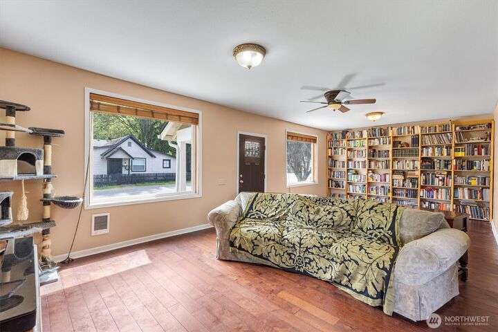 Welcome Home! You will love this charming 2-story 3-bedroom, 2-bath home on a large lot in downtown Castle Rock! The spacious living room features engineered hardwood flooring, arched doorways, and a massive built-in bookcase. The kitchen showcases tile flooring, quartz countertops, oak cabinets, and stainless steel appliances. All three bedrooms are spacious, with 1 on the main floor and 2 up. The home also features ductless heating and cooling, walk-in closets, ceiling fans, a newer roof, updated plumbing, updated electrical, a wood deck, and much more! All situated on a massive 100x100 fenced corner lot. Plenty of space for a garage or that shop you have always wanted! Schedule a personal viewing appointment today!