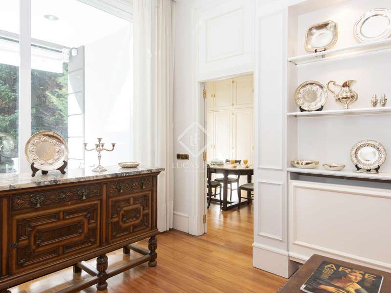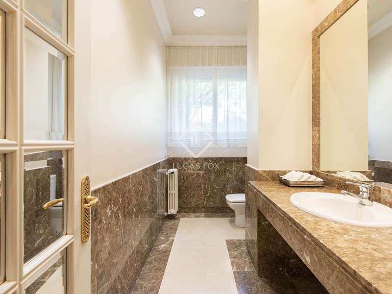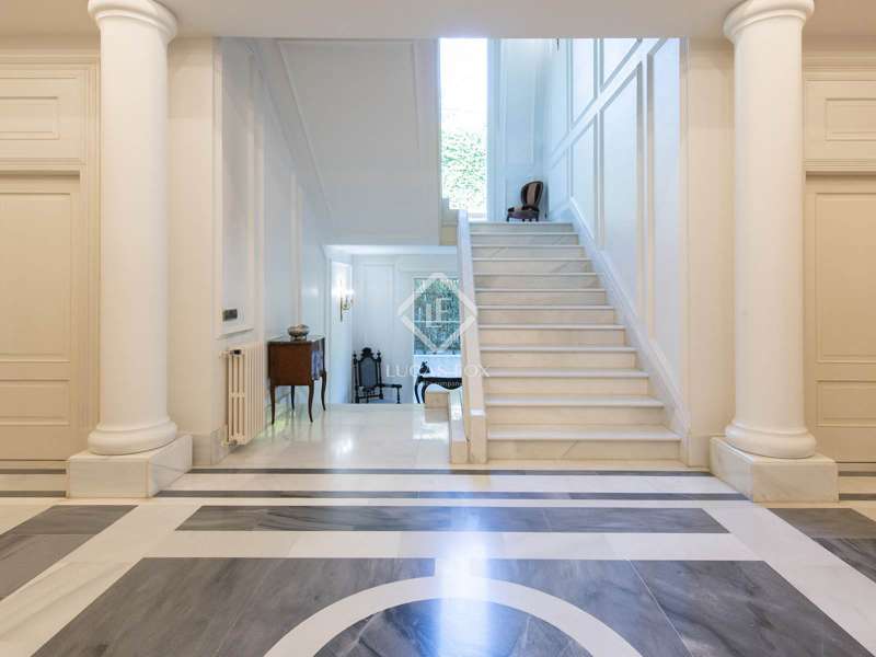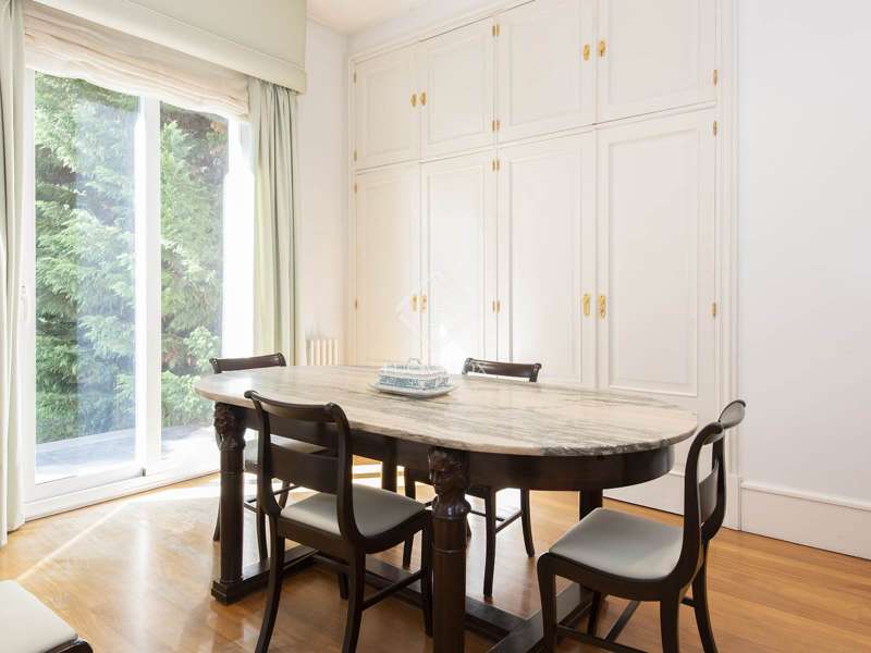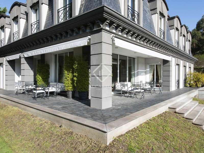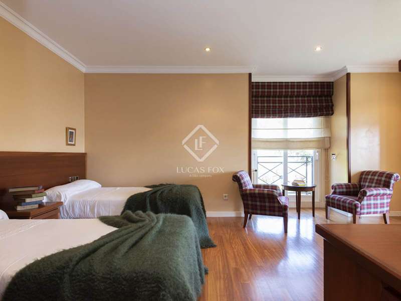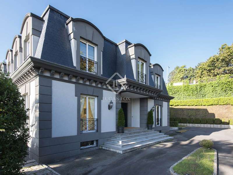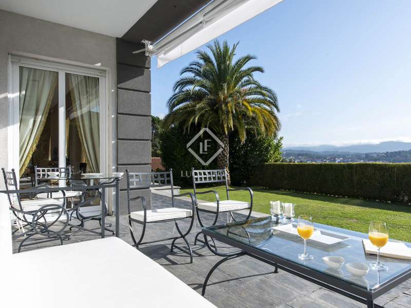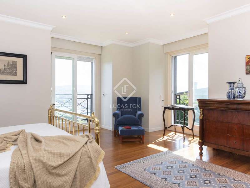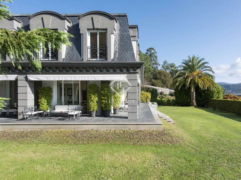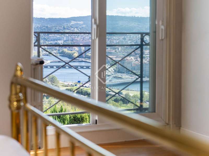 This luxury property is located in a privileged area with fantastic views of the city of Pontevedra, the Lerez River and the estuary of Pontevedra. It offers total privacy since trees, hedges and a large wall surround it. We must highlight the elegance and exquisite taste of the entire façade once we arrive at the property. The entrance to the villa, via small steps, takes us to a large, elegant, bright and minimalist reception hall that offers us several spaces on this floor. On the right-hand side, we find an elegant library/study area with two study spaces, in a bright and quiet location. On the left side, we find a large, exquisite living room with a classic perfectionist style; large windows offer bright natural light and direct access to a beautiful outdoor terrace with views of the garden and the city of Pontevedra. This level offers high ceilings finished with exquisite ceiling mouldings. On the same level, we find a sitting area with a comfortable and spacious living area and direct access to the terrace. Next to the lounge area, there is a small dining room, along with large sliding windows with access to an outdoor patio for dining in the exterior sections on lovely days. We find the kitchen area next to the small dining area, with a centre island and a small breakfast area. There is a laundry room next to the kitchen area, We have a guest bathroom and a separate service staff entrance on this floor. On the first floor, we find the sleeping area which we reach via an exquisite marble staircase with a modern and minimalist design. On this level, we find five en-suite bedrooms with fitted wardrobes. The main suite has a small lounge area and a walk-in closet. All en-suite bedrooms are spacious. The views from this level are lovely. On the ground floor of this villa, we find a large living room intended for leisure, family gatherings, and events and an ideal space with a separate entrance. Here, we also find the parking garage for four vehicles, the wine cellar, a storage room and the utility room. This would be an ideal property for a family looking to relocate to one of the most sought-after areas of Pontevedra and looking for a luxury property near the city and Sek International School, which is steps away from this property. The property can be sold furnished with the decoration and appliances. Artwork and certain elements of persoanl value will not be included in the sale.