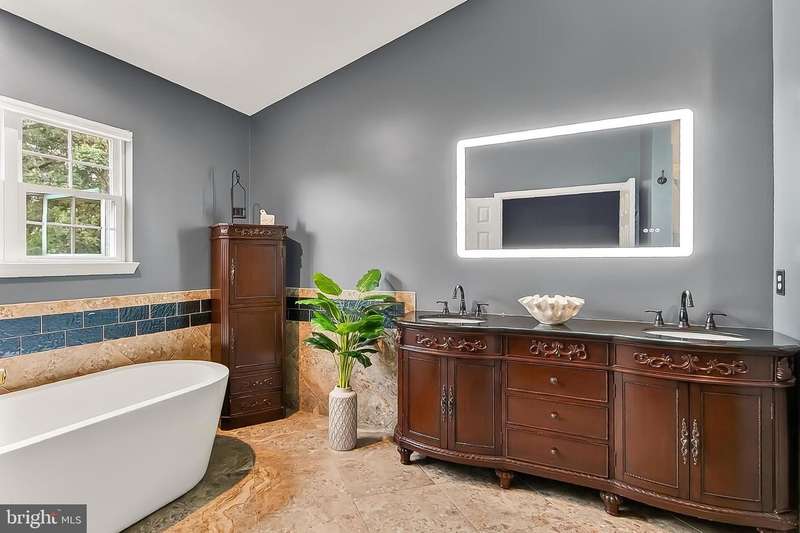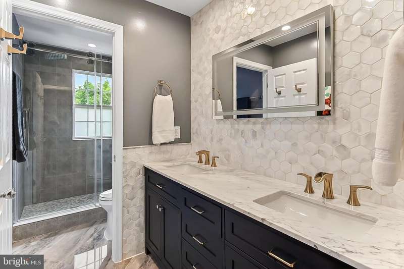 Get ready to fall in love with this 5 bedroom/3 full + 1 half bath brick-front Twinbrook at Mt Air colonial located where Lorton, Alexandria and Springfield meet. As you walk into this stunning home, you will appreciate the formal living and dining rooms as well as a spacious family room with stone fireplace, cathedral ceilings, powder room and adjoining chef's dream kitchen which walks out to a balcony overlooking a tranquil hardscaped rear yard backing to wooded parkland. Upstairs you will find four spacious bedrooms and two full baths renovated to perfection. The primary bedroom includes an en-suite bathroom with soaking tub, walk-in shower and plenty of closet space. the three additional upper bedrooms share a spa inspired marble hall bath. The lower level has an expansive rec room with bar, third full bath, additional fifth bedroom and a multi-purpose room which could be additional sleeping quarters, home office or playroom. The lower level walks out to the fully fenced rear yard with flagstone patio--perfect for entertaining or enjoying the privacy of backing to mature treed Fairfax County parkland for quiet days and nights outdoors. Special features include warm wood floors on the main and upper levels, two cozy fireplaces, plantation shutters and wood blinds throughout, heated bathroom floors in the upper level, designer carpeting in the lower level, front lawn irrigation system and two car garage with additional driveway parking. Perched on a hill conveniently off of Telegraph Road makes commuting a dream as you are moments away from Ft Belvoir, Kingstowne, Old Town and DC. Excellent Fairfax County schools convey. Even the most discerning of purchasers will be in awe of this impeccable home.