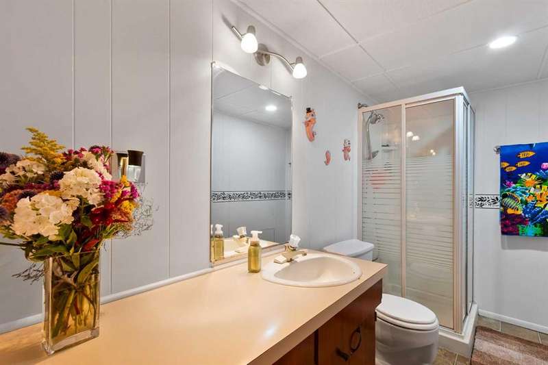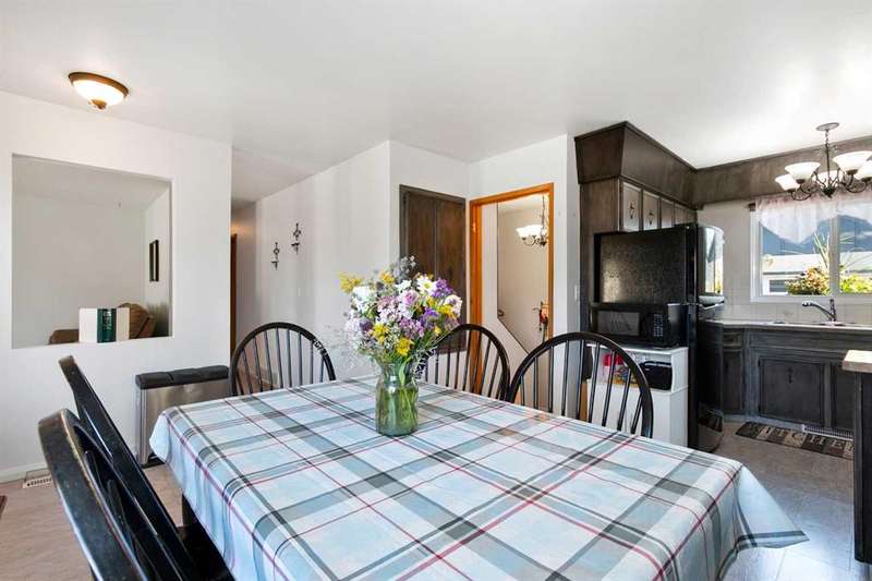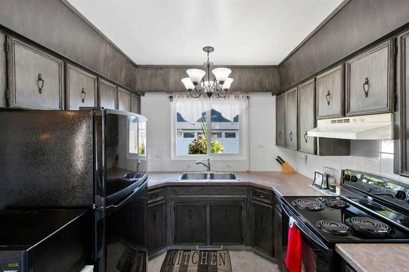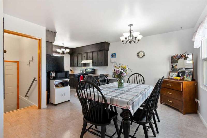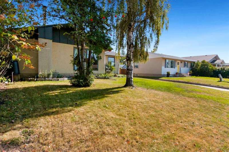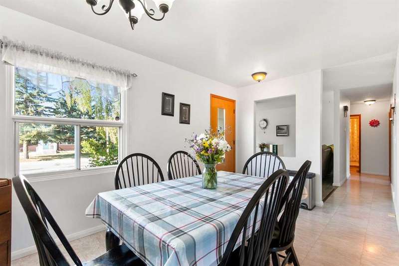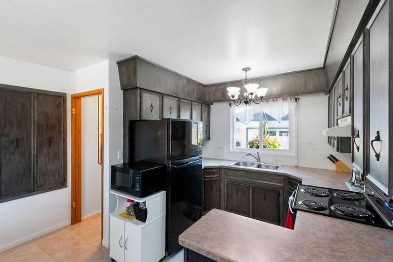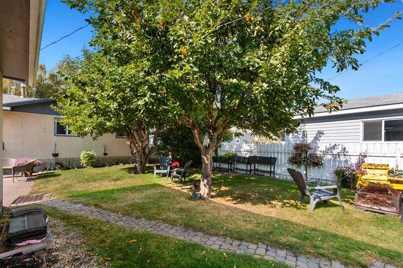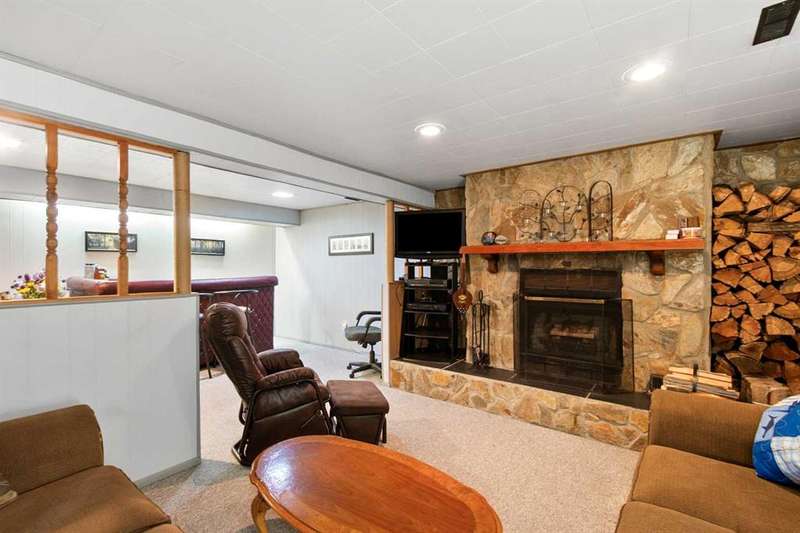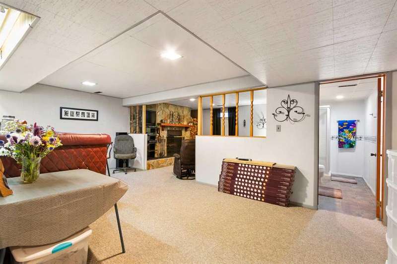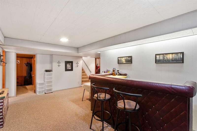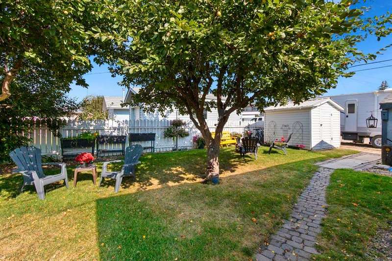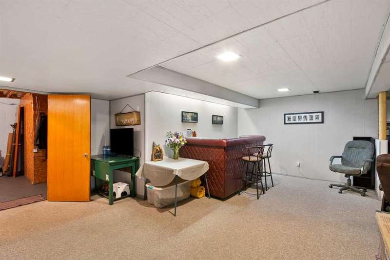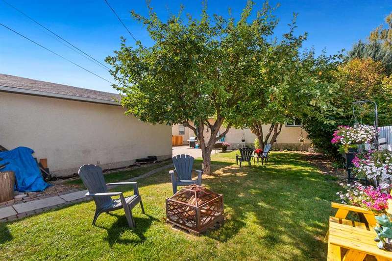 This well-maintained bungalow offers just over 1,090 sq.ft. on the main level with a full finished basement, giving you nearly 2,200 sq.ft. of total living space. Built in 1969, the home has been updated over the years with newer shingles, an upgraded electrical panel, some replaced main-floor windows, and refreshed flooring — with most of the upstairs now finished in durable tile. The main level features a bright living room, a large dining space, and a practical kitchen with adjoining pantry. Three comfortable bedrooms and a full bathroom complete the layout, making it ideal for families or downsizers alike. The finished lower level provides plenty of flexible space for relaxing or entertaining, with a cozy stone wood-burning fireplace, wet bar, second bathroom, laundry, and extra storage. It’s perfectly set up for family movie nights, games, or hobbies. Outside, the property shines with versatile parking and mature landscaping. A concrete driveway pad at the front leads to a 24x24 oversized double detached garage with workshop space. From the alley, there’s even room to park a 30’ camper behind the garage. In total, you’ll find space for 5+ vehicles. The lot also offers a private courtyard, fire pit, shed, and a couple of mature trees for shade and character. Located just 2 blocks off Highway 27 and north of Tim Hortons, this property combines convenience with comfort. With practical upgrades already completed and abundant living space inside and out, this bungalow is a great opportunity in Olds.