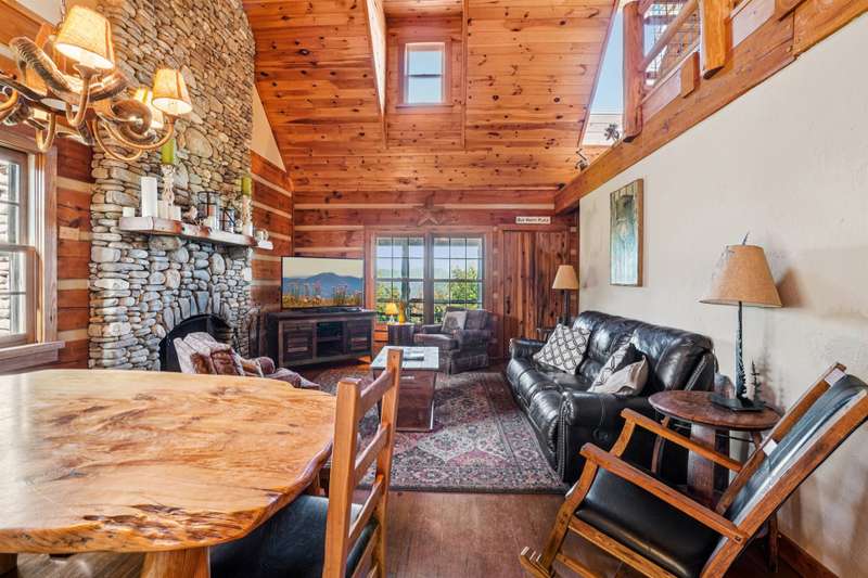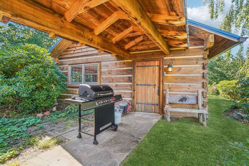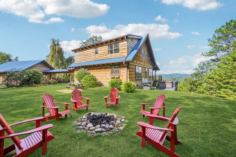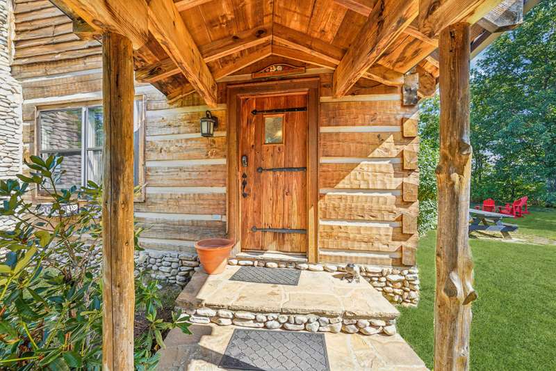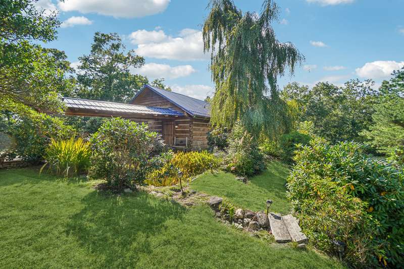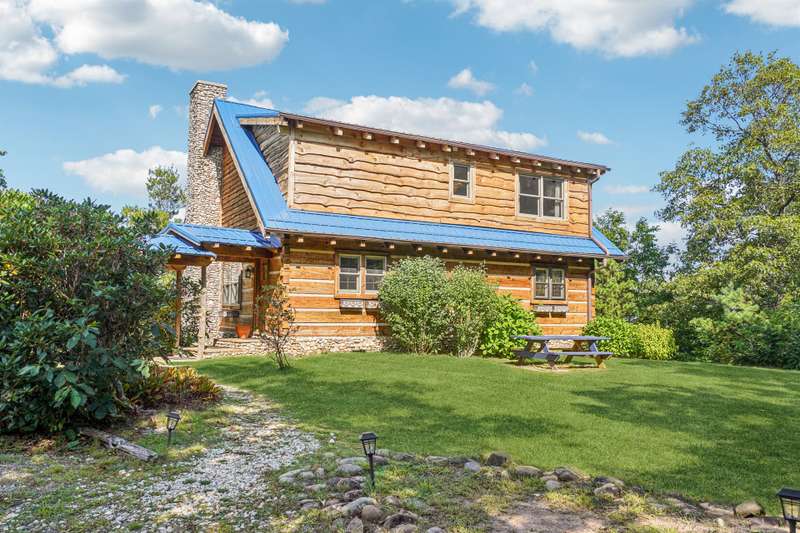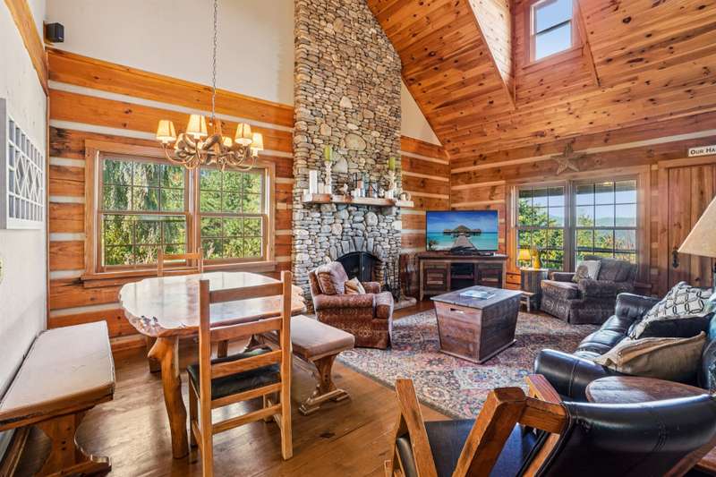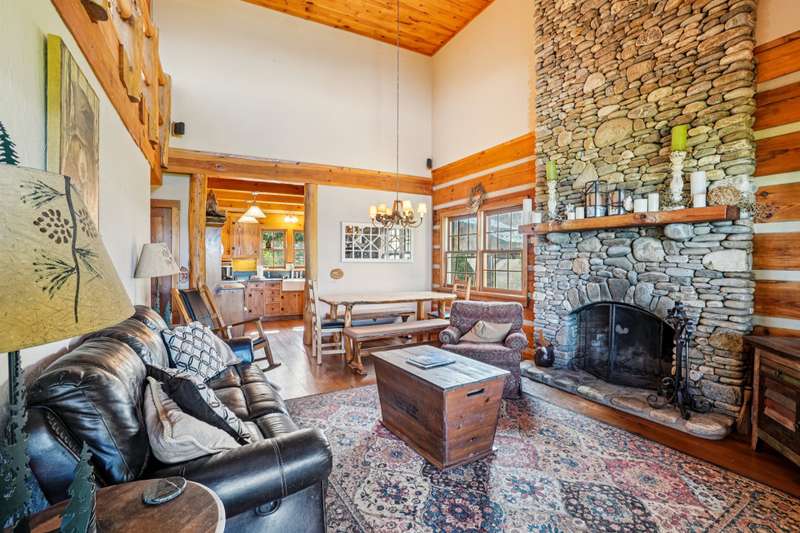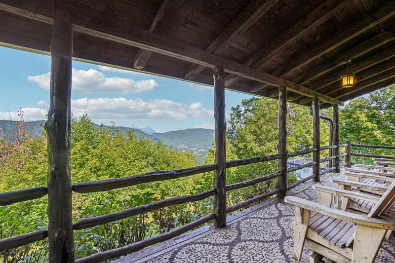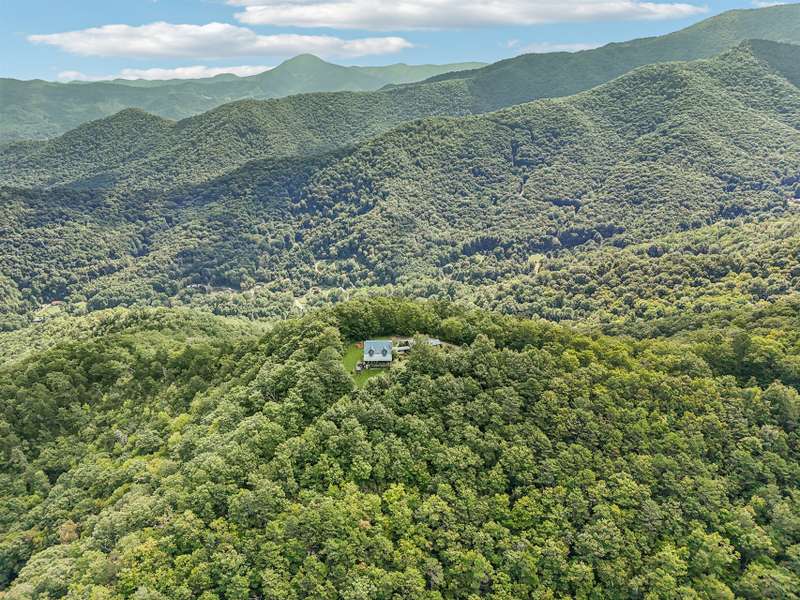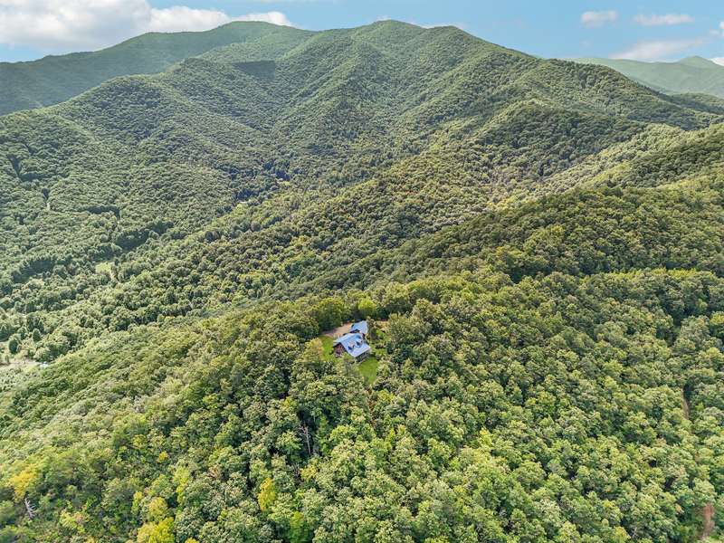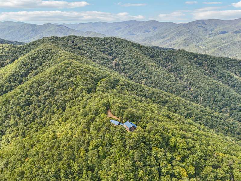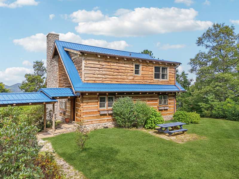 BREATHTAKING 270? VIEWS FROM COLD MOUNTAIN SUMMIT! Extraordinary 3BR/2BA log retreat at 4,600' elevation on nearly 3 FLAT acres - virtually impossible to find at this height! NEW METAL ROOF 2024! Stunning panoramic long-range vistas with gorgeous WEST-FACING VIEWS from covered back porch perfect for sunset watching. Private pond, outdoor firepit, two master suites with soaring ceilings & dramatic floor-to-ceiling stacked stone wood-burning fireplace. Detached heated garage/workshop with wood stove - perfect for hobbies or guest suite conversion. MILES OF HIKING TRAILS right outside your front door connecting to 250 wilderness acres & Pisgah National Forest. COMPLETELY FURNISHED & SHORT-TERM RENTAL READY with proven income history. Your private mountain kingdom awaits!